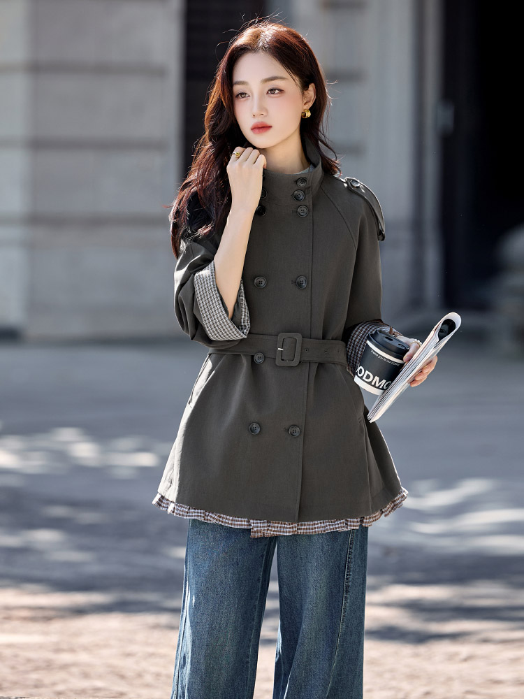 FA51488# 风衣女中长款秋新款超好看高级感英伦风韩版立领收腰显瘦大衣 服裝批發女裝批發服飾貨源