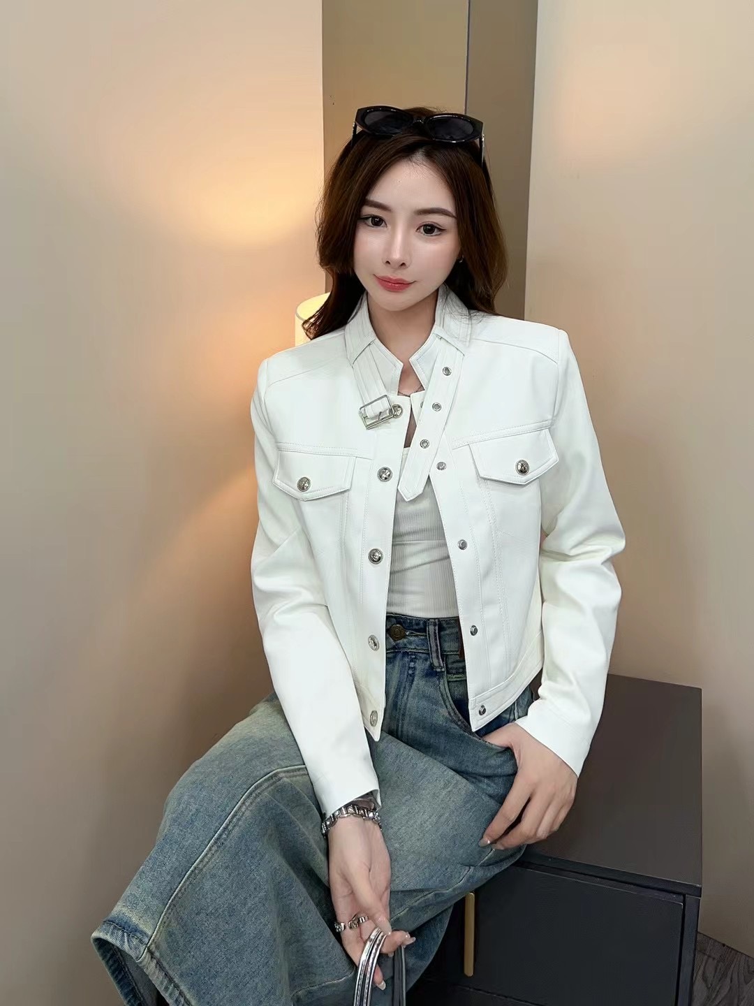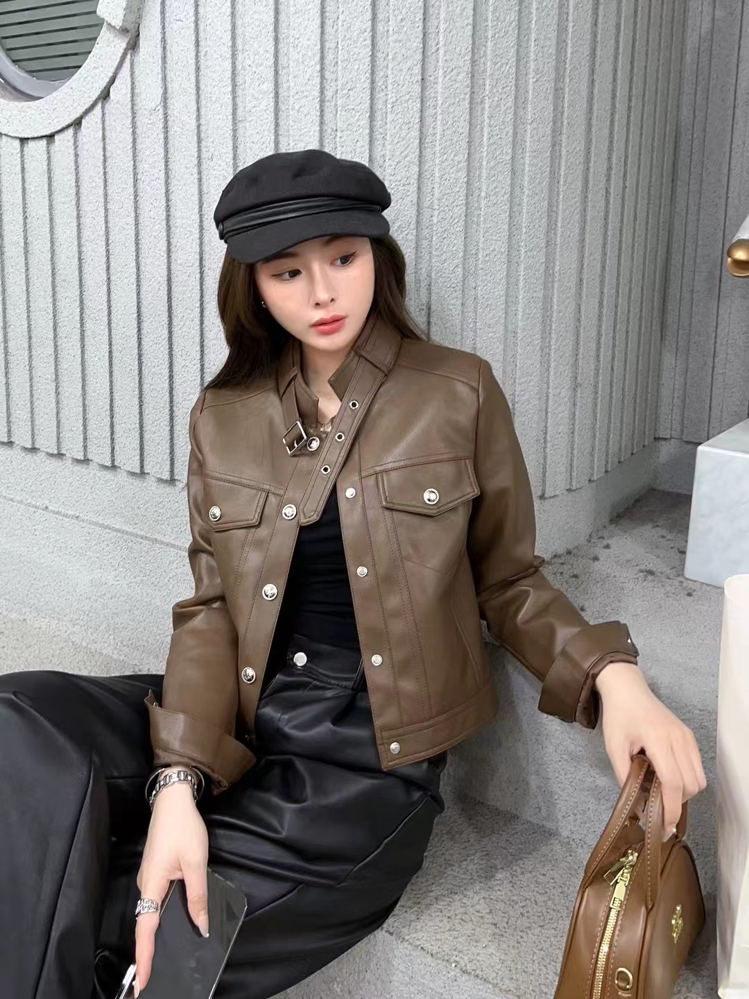 FA51496# 复古高级感PU外套黑色百搭短款机车皮衣夹克女小众腔调帅气韩版 服裝批發女裝批發服飾貨源