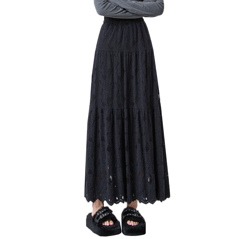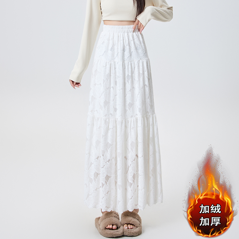 FA51517# 加绒蕾丝蛋糕半身裙女秋冬高腰显瘦遮跨中长款A字伞裙仙女裙 服裝批發女裝批發服飾貨源