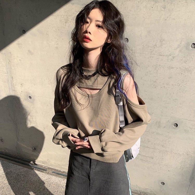 Home > 卫衣 > FA51534# 新款卫衣女假两件外穿短款露肩上衣秋冬季韩版纯色T恤前后两穿 服裝批發女裝批發服飾貨源