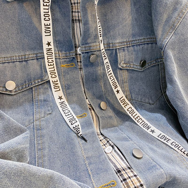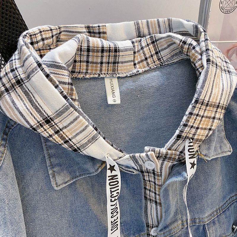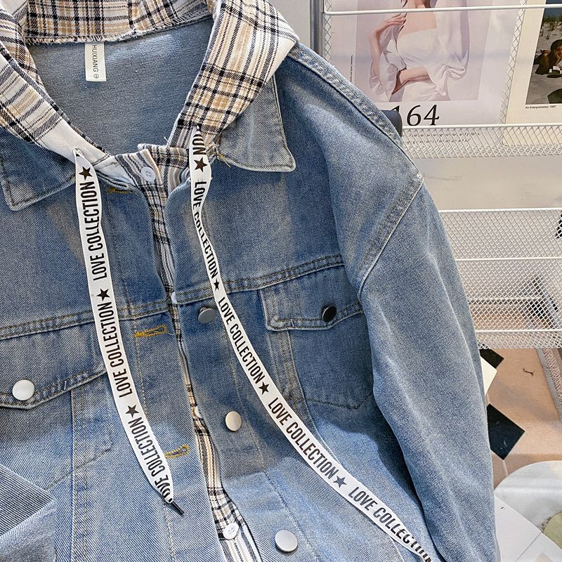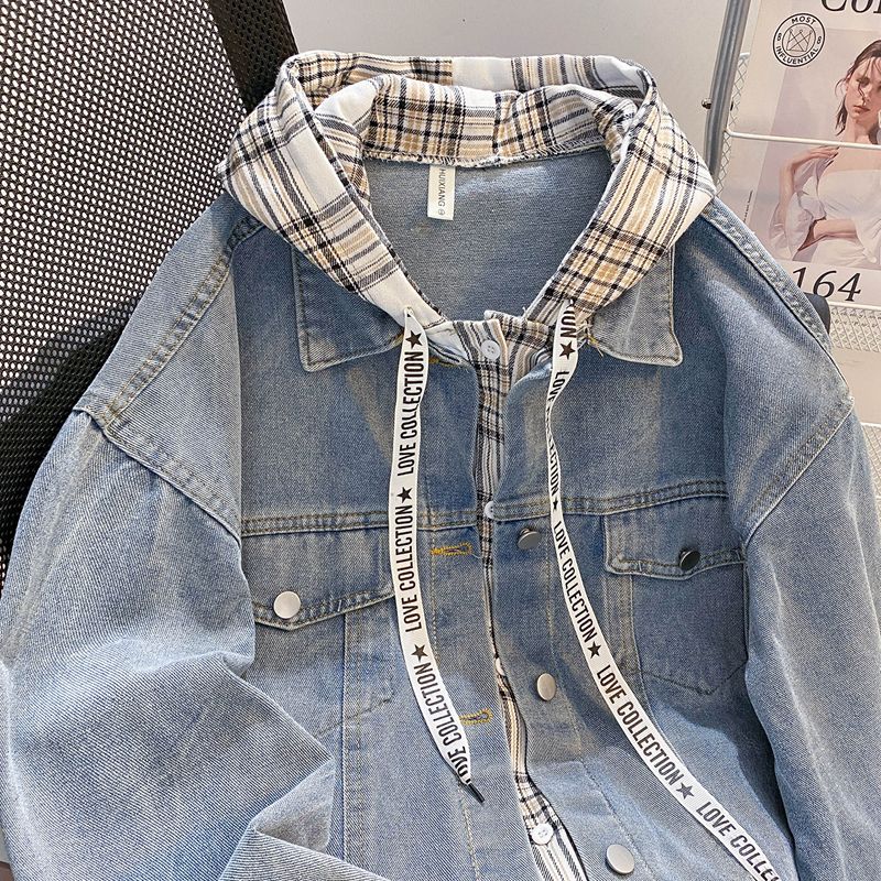 FA51554# 秋冬新款慵懒风设计感假两件连帽牛仔外套女 服裝批發女裝批發服飾貨源