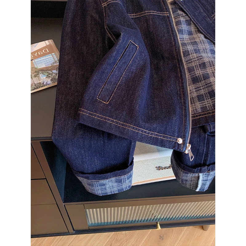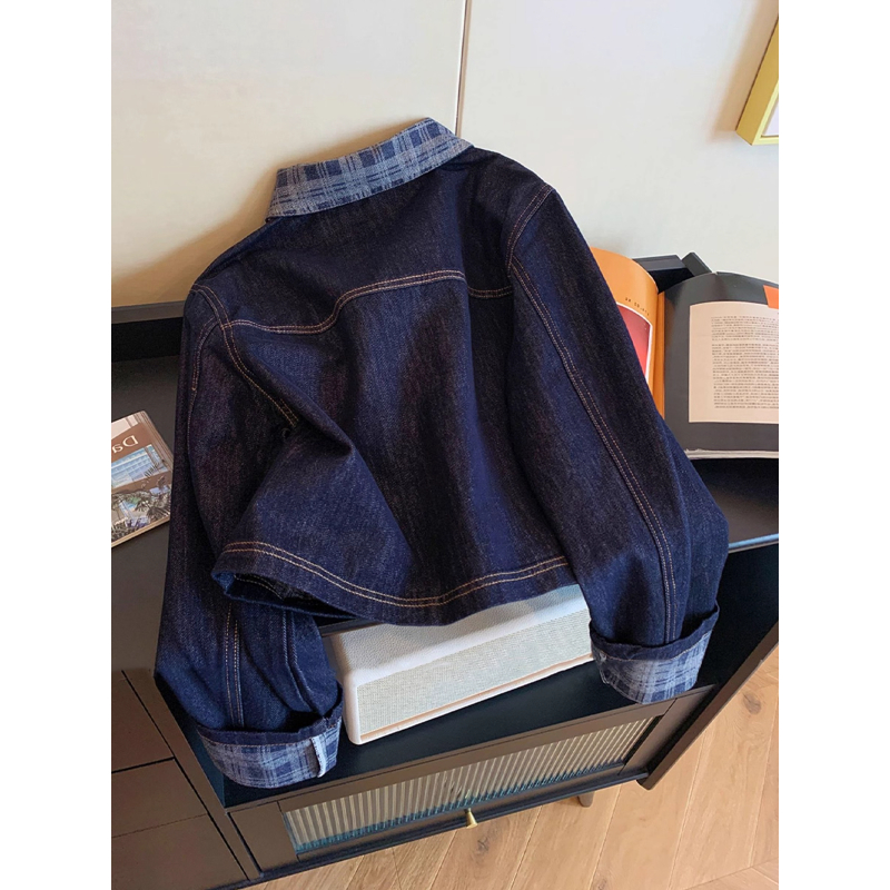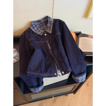 FA51560# 小香风重工蕾丝花边拼接碎花牛仔外套女春秋气质显瘦百搭夹克上衣 服裝批發女裝批發服飾貨源