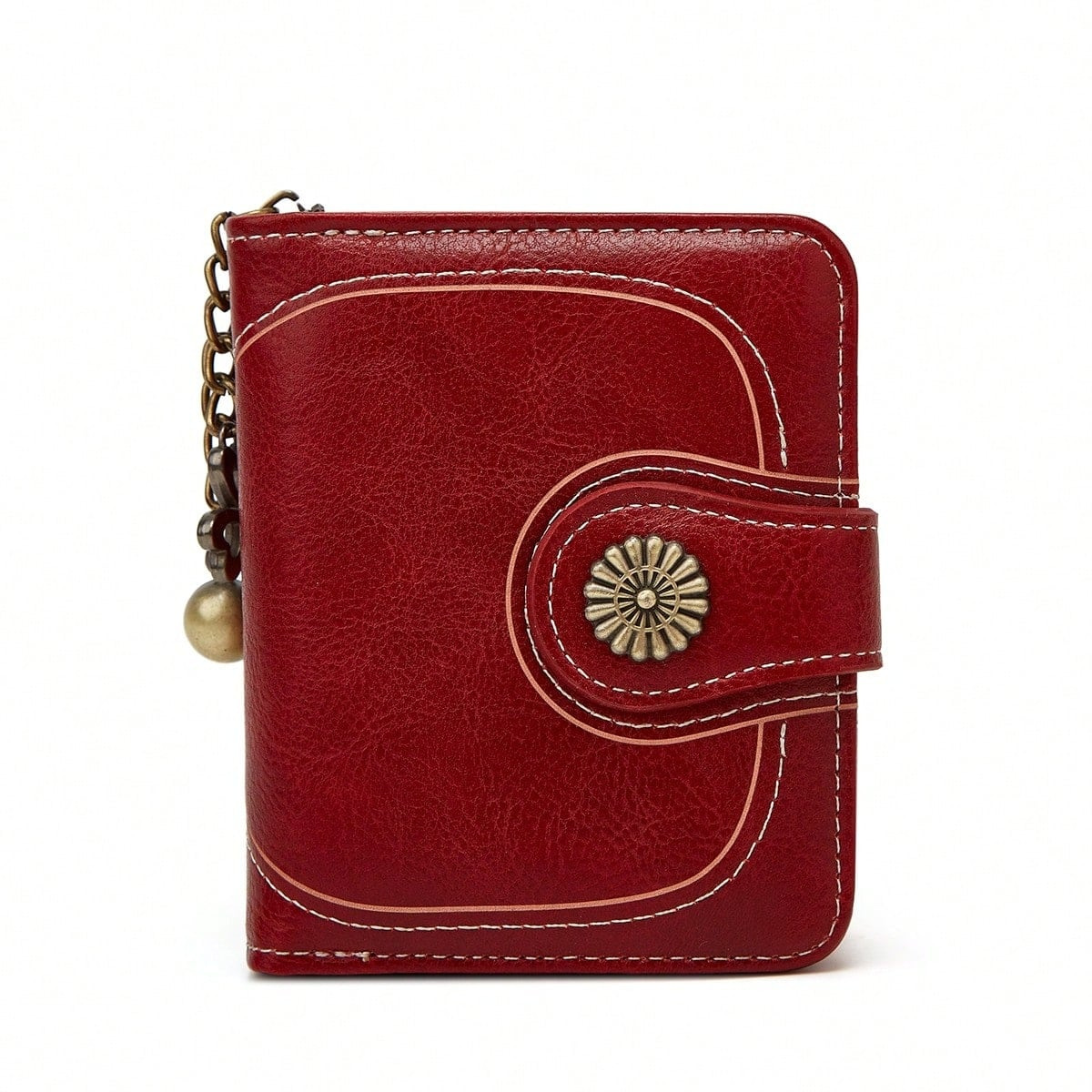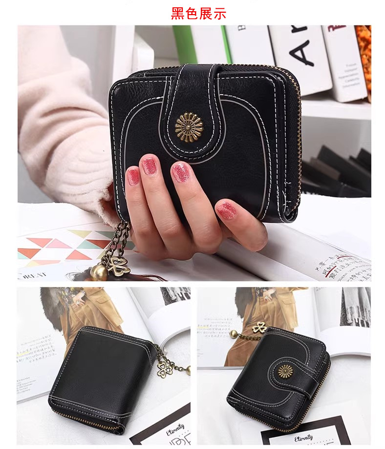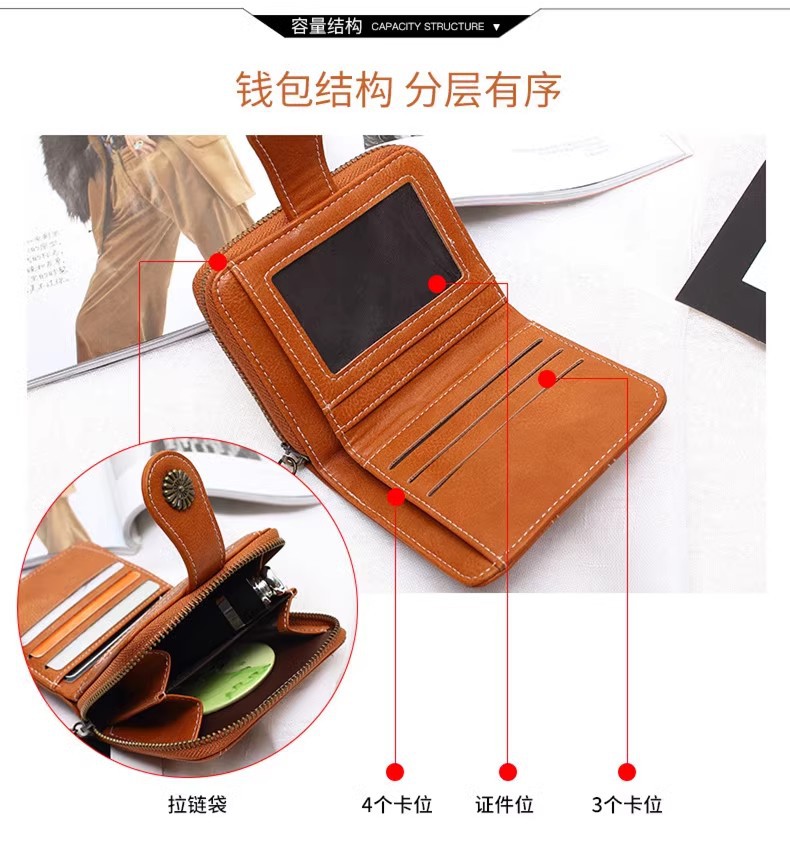 TJ2174# 短款拉链零钱包新款女士三折手拿包时尚油皮多卡位硬币包卡包H173