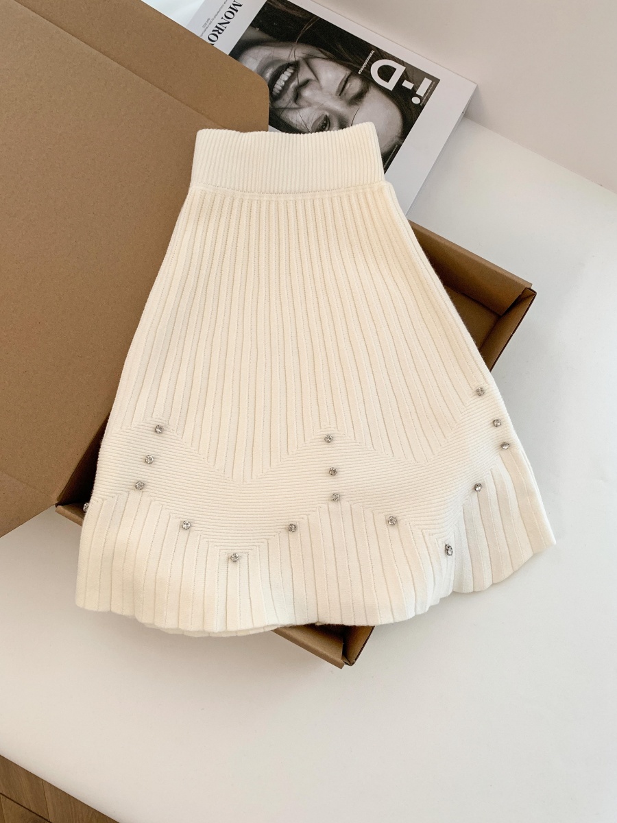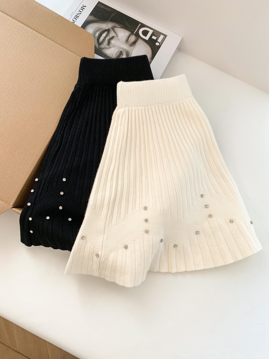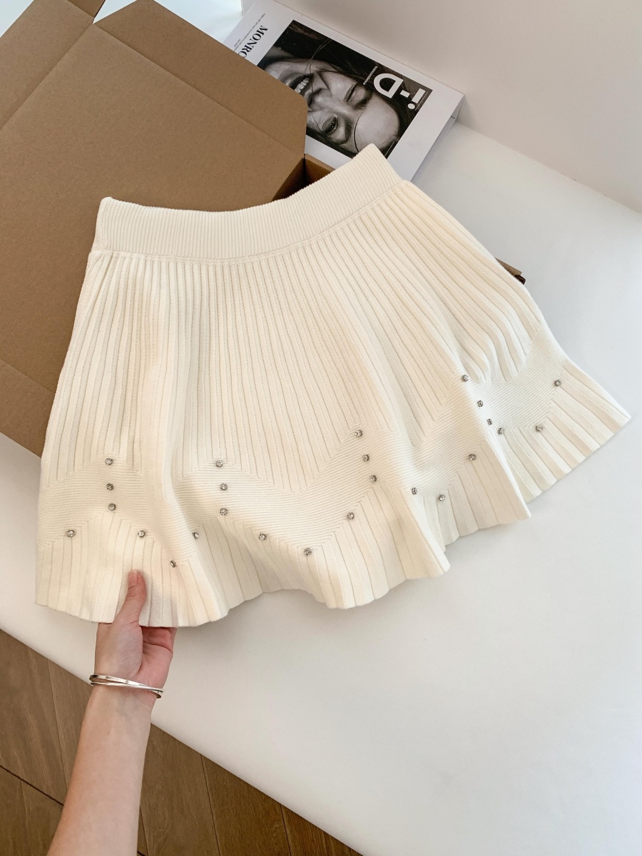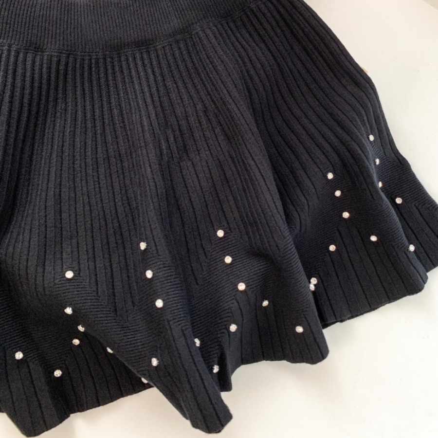 FA51651# 爆款推荐烫钻针织短裙秋冬高腰显瘦百褶短款半身裙 服裝批發女裝批發服飾貨源