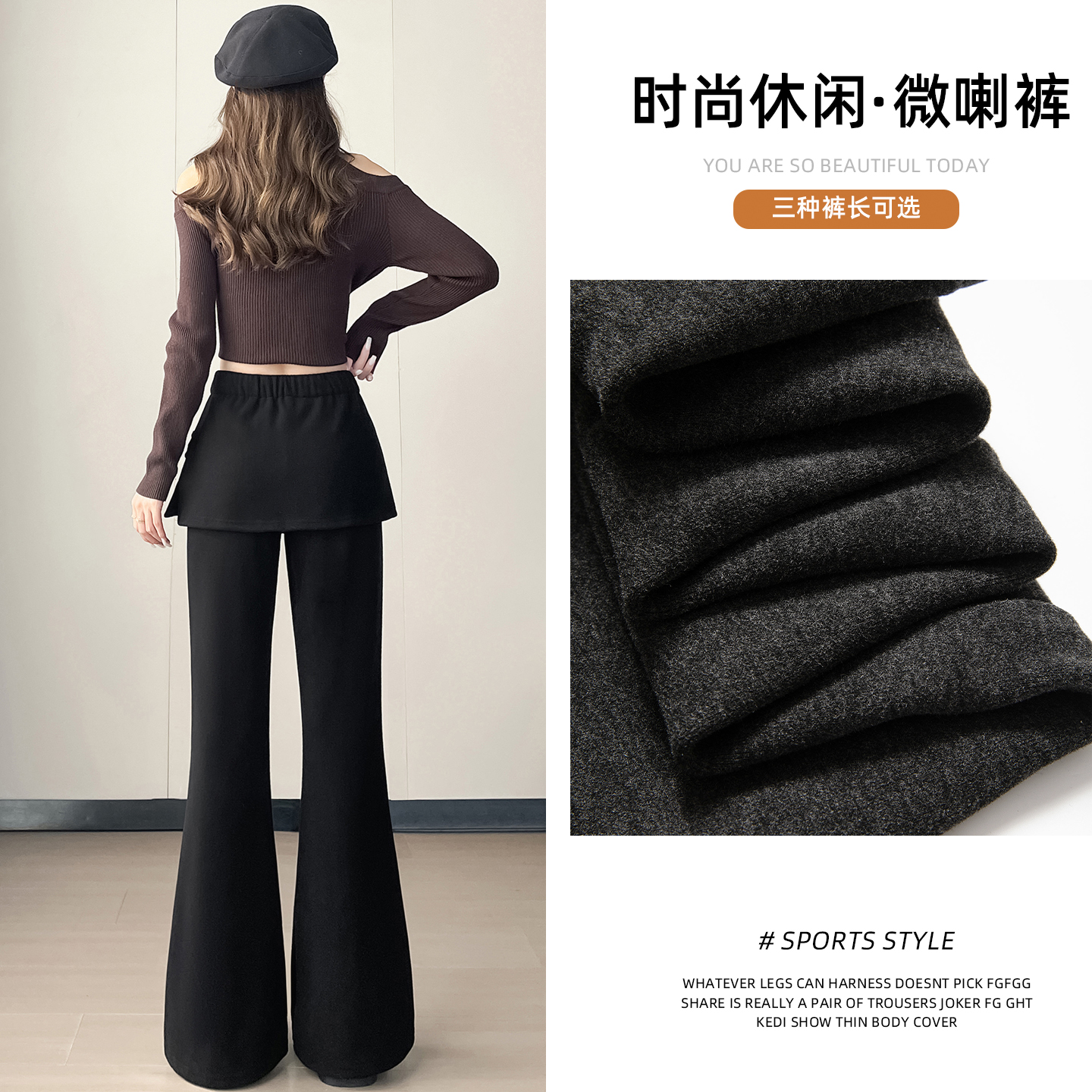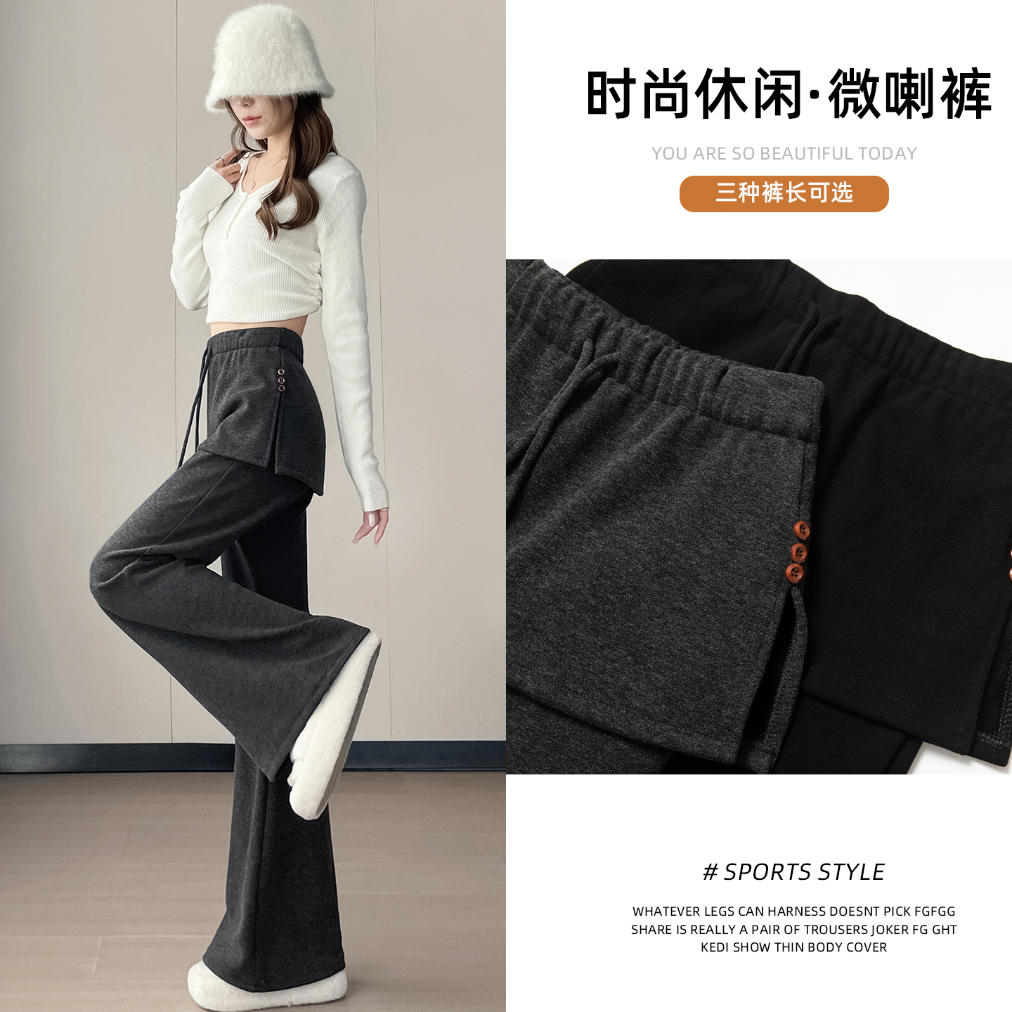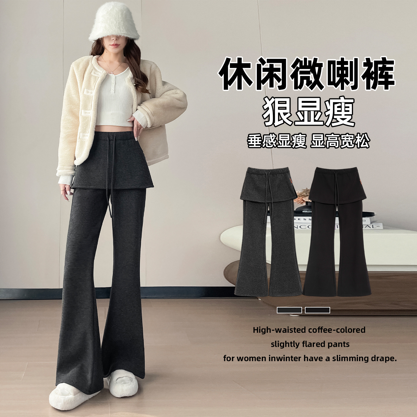 Home > 牛仔裤、长裤 > FA51762# 加厚加绒抽绳假两件纽扣皮帘裤修身休闲高腰显瘦阔腿微喇裤 服裝批發女裝批發服飾貨源