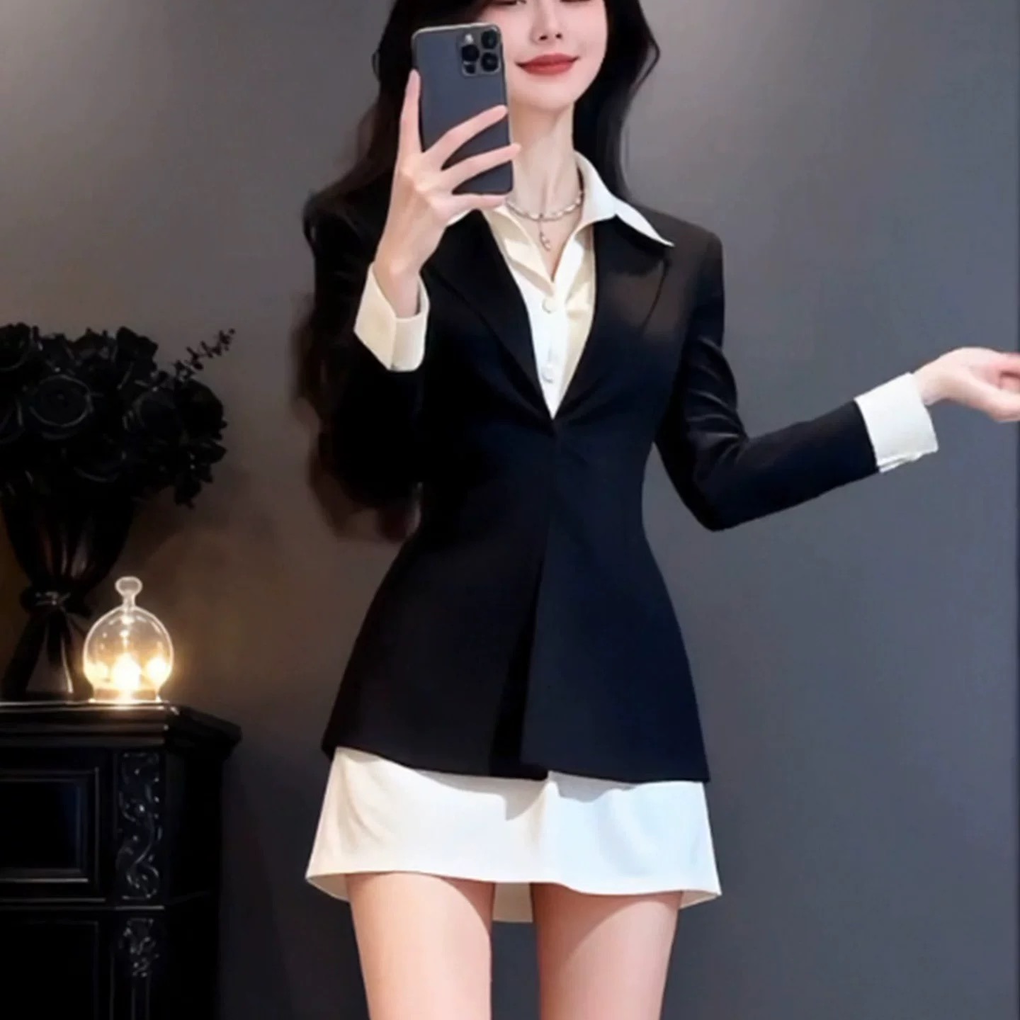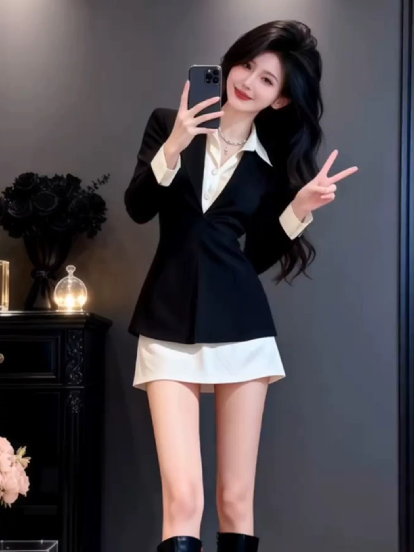 FA51787# 轻奢气质高级感假两件连衣裙春季新款小个子短裙法式裙子女装 服裝批發女裝批發服飾貨源