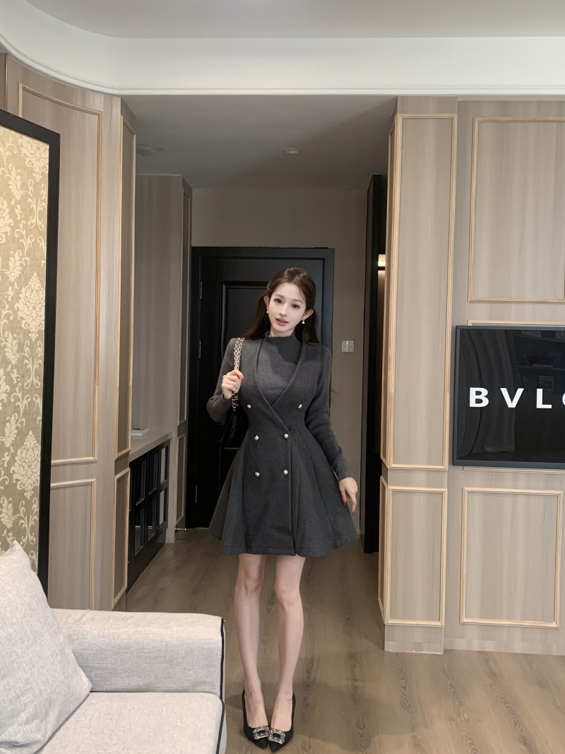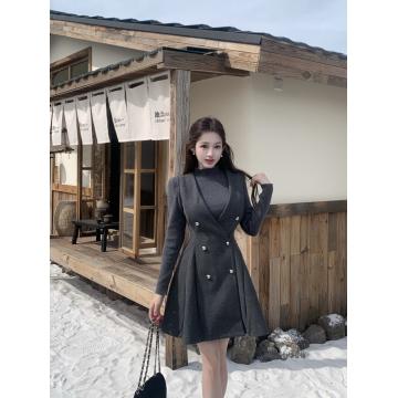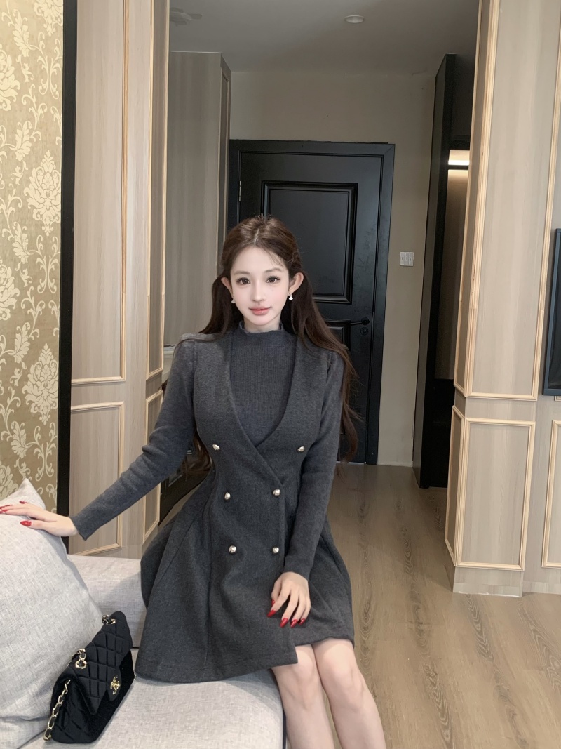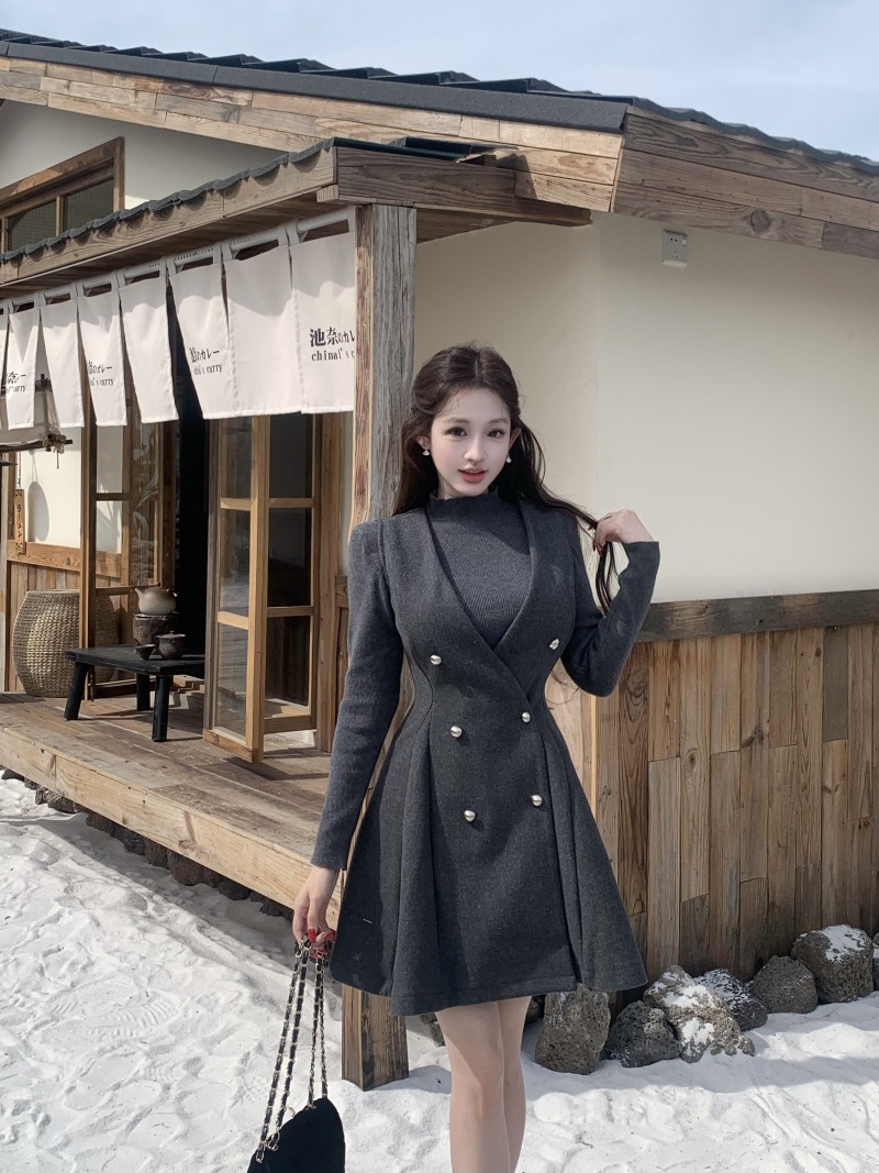 灰色针织+灰色毛呢裙