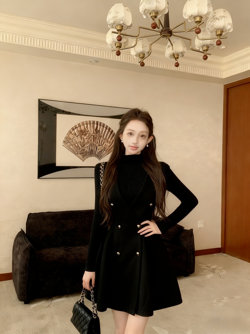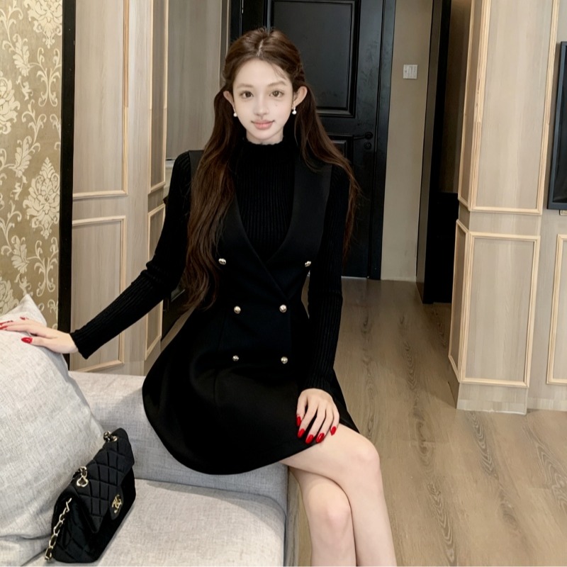 黑色针织+黑色毛呢裙