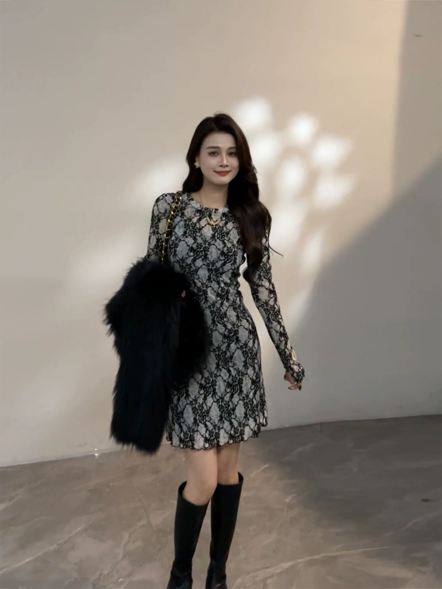 Home > 夜店裙、长袖连衣裙 > FA51791# 大婷婷复古秋冬长袖加厚短裙修身连衣裙长短款加绒内衬 服裝批發女裝批發服飾貨源