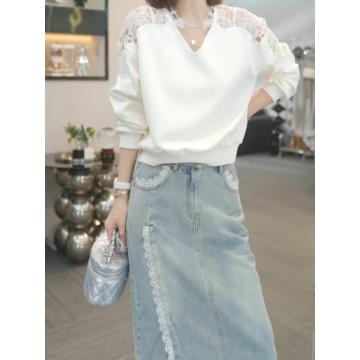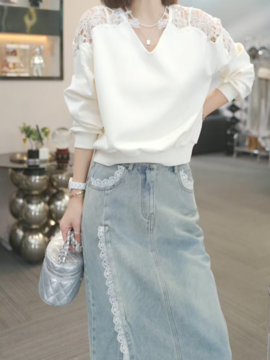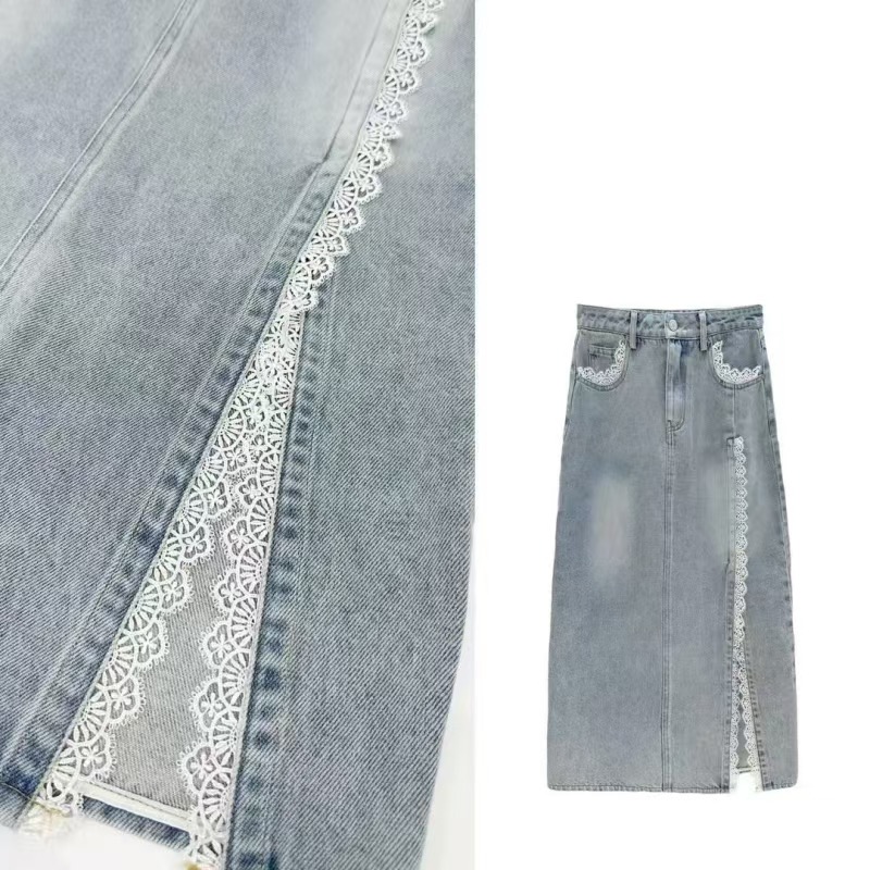 FA51820# 熙薇春深似海春季新款时尚休闲直筒显瘦蕾丝百搭牛仔裙 服裝批發女裝批發服飾貨源