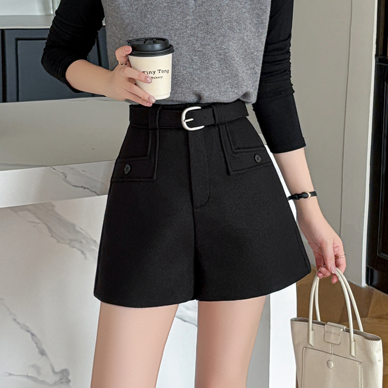 Home > 短裤、半身裙 > FA51823# 休闲短裤女秋冬新款高腰西装毛呢短裤口袋呢子A字阔腿裤 服裝批發女裝批發服飾貨源