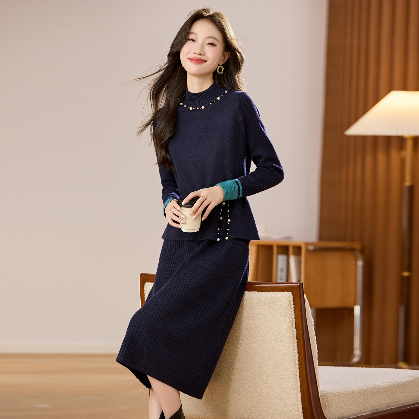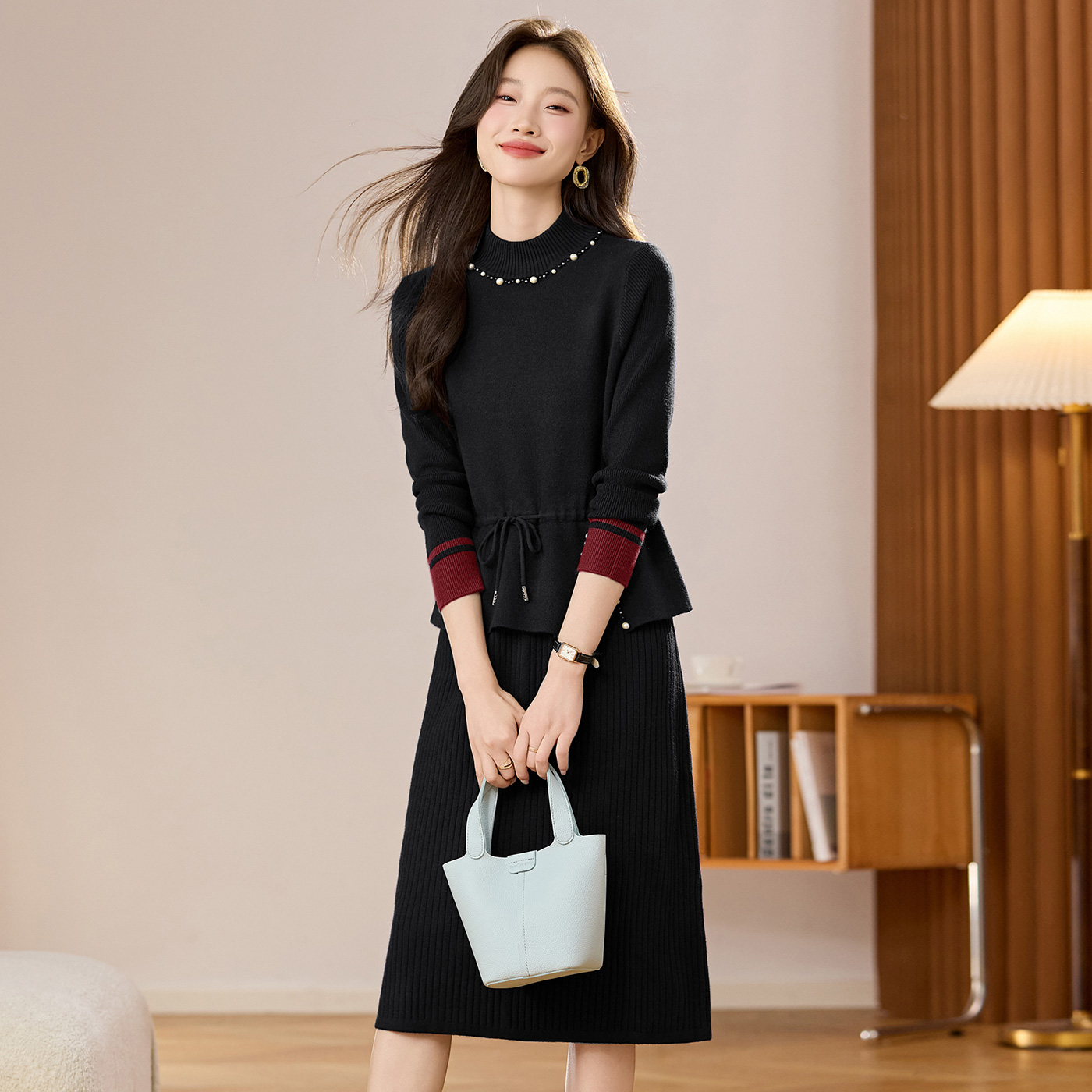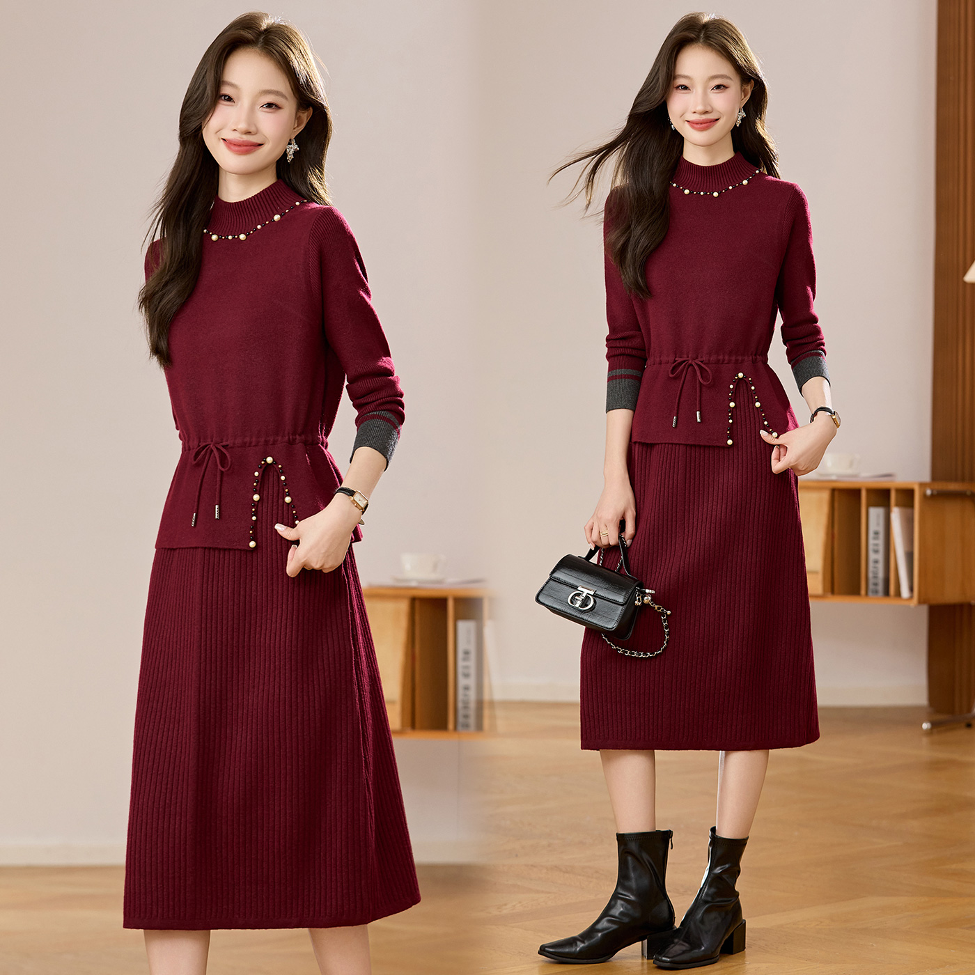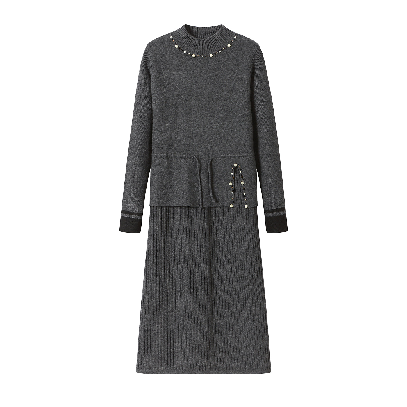 FA51890# 爆款钉珠马甲连衣裙女秋冬新款中长款纯色针织毛衣冬裙子 服裝批發女裝批發服飾貨源