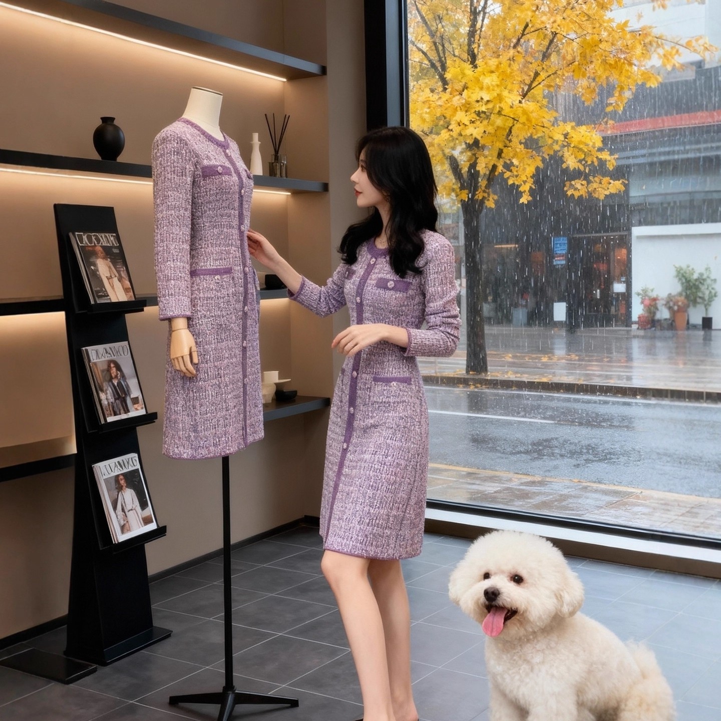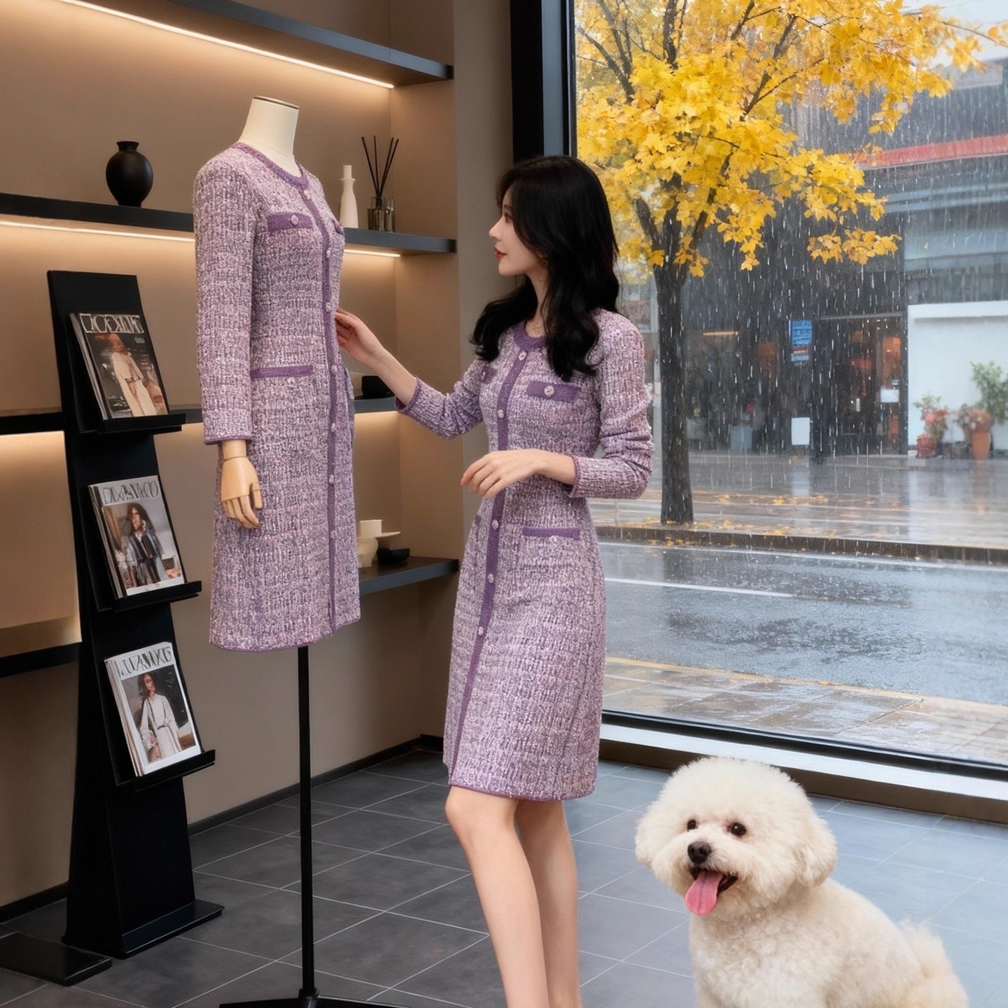 FA51919# 小香风紫色针织连衣裙女秋冬新款修身收腰名媛气质排扣长裙子 服裝批發女裝批發服飾貨源