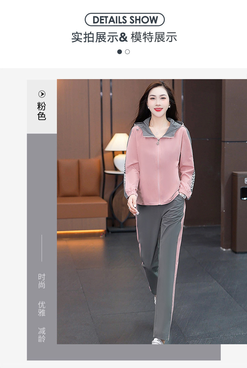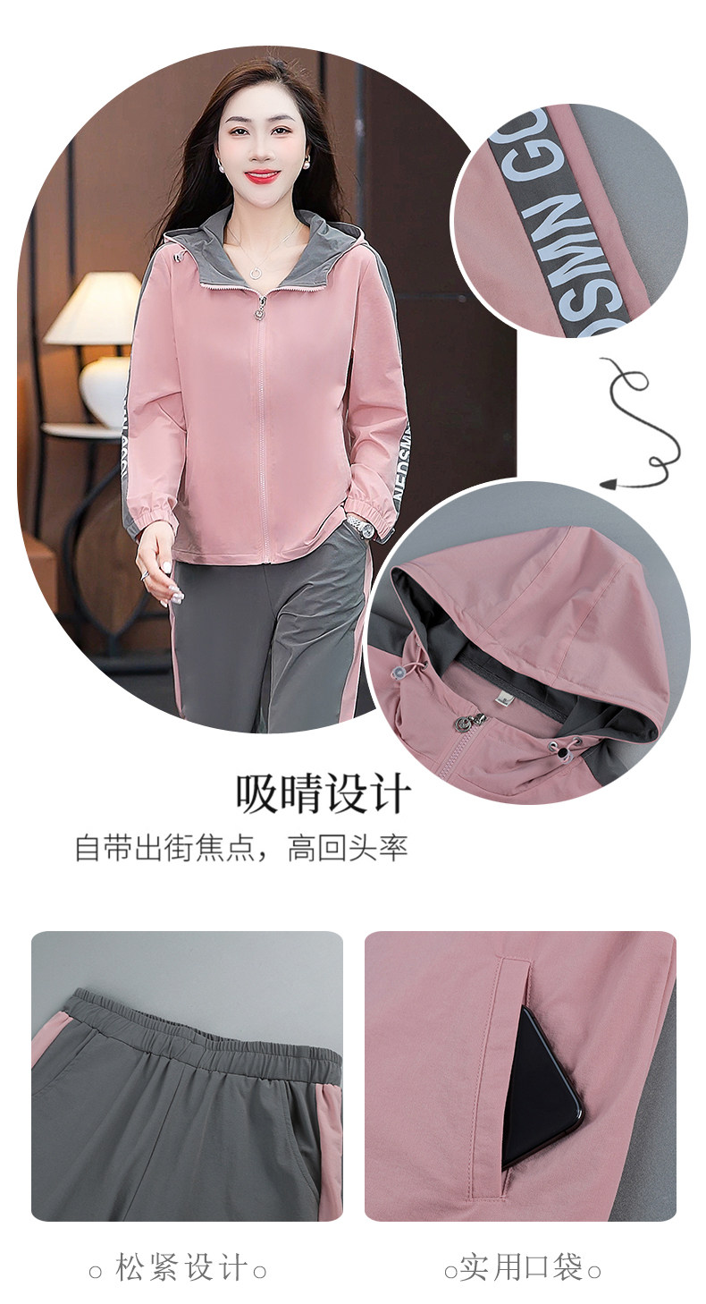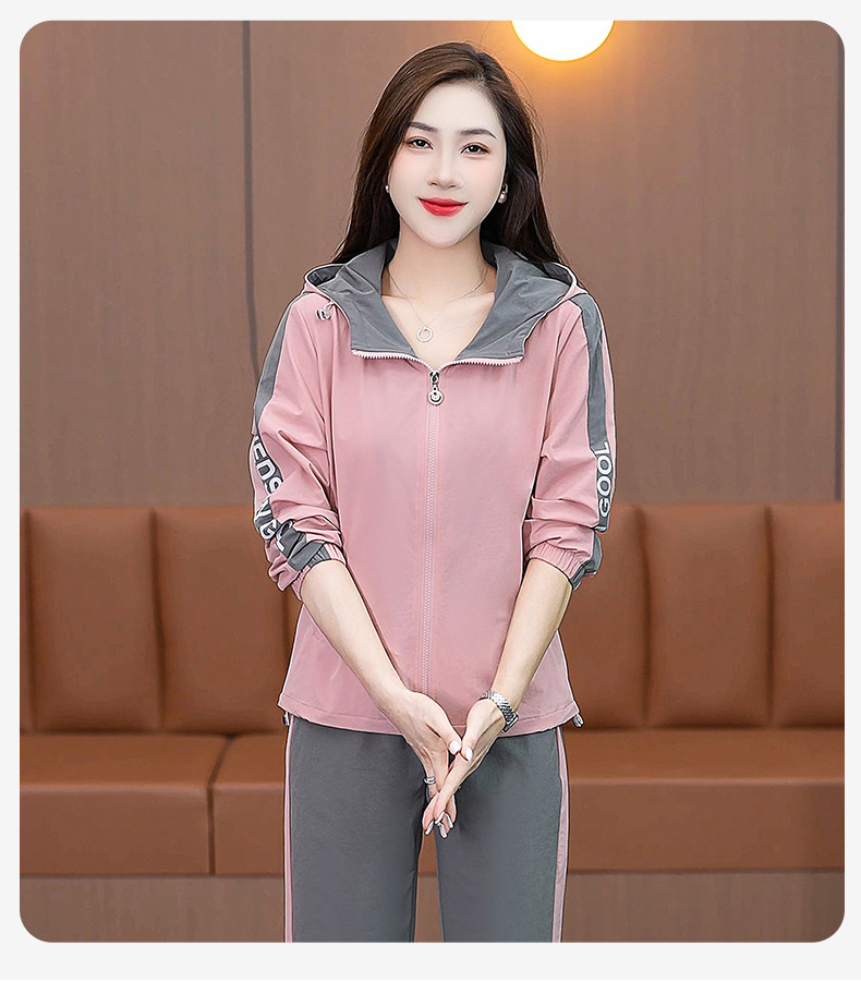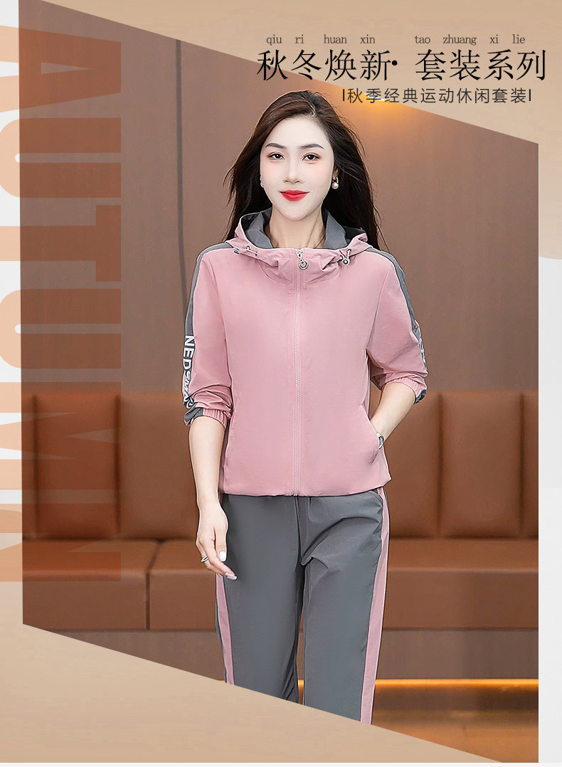 FA52257# 新品连帽休闲运动服套装女新款春秋季时尚洋气跑步宽松大码两件套 服裝批發女裝批發服飾貨源