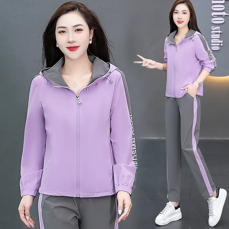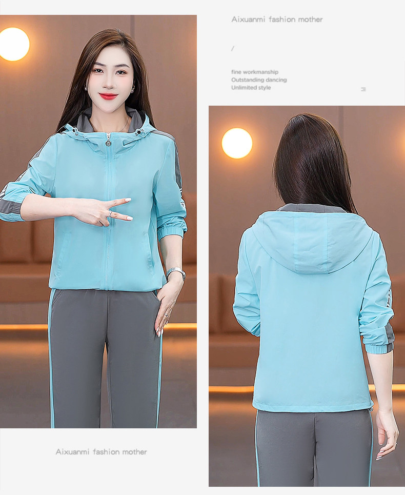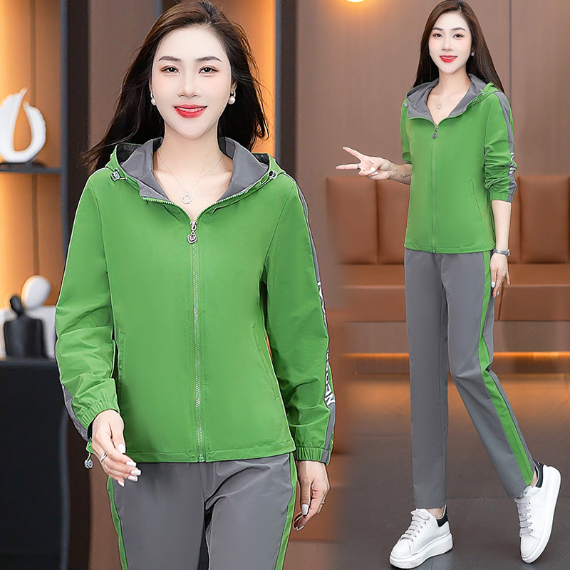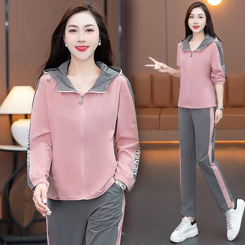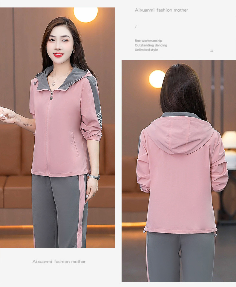 FA52257# 新品连帽休闲运动服套装女新款春秋季时尚洋气跑步宽松大码两件套 服裝批發女裝批發服飾貨源