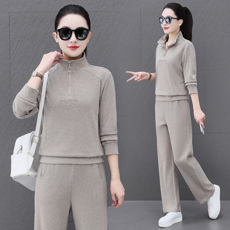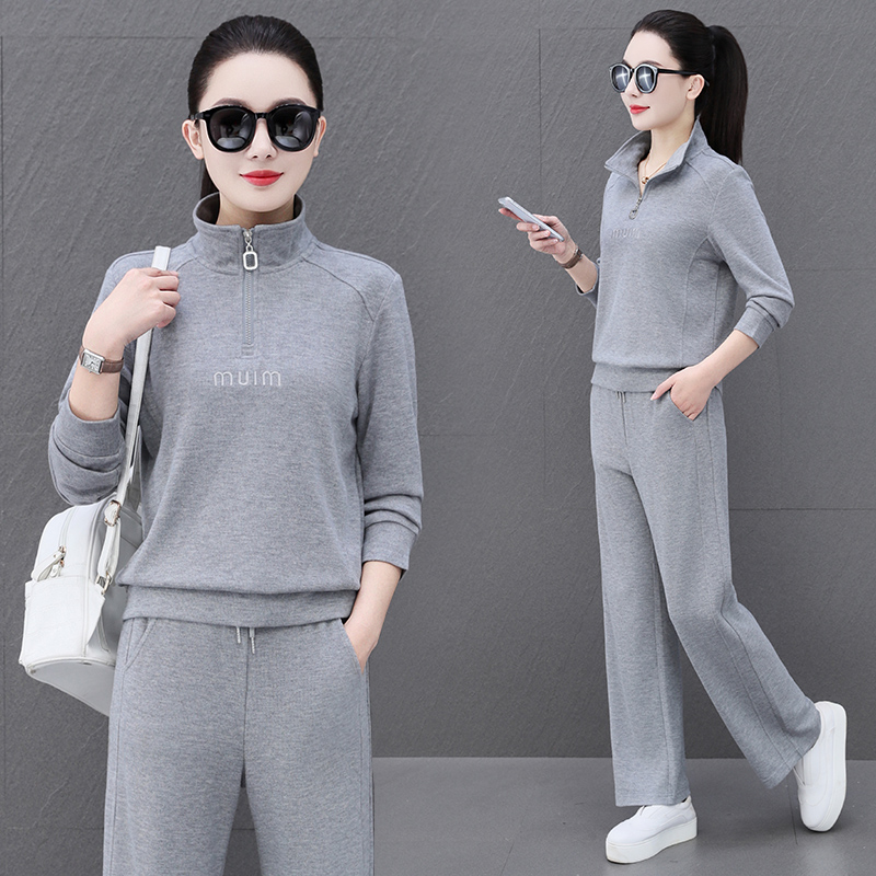 FA52287# 春秋阔腿裤运动套装女新款时尚洋气时髦款休闲立领两件套 服裝批發女裝批發服飾貨源