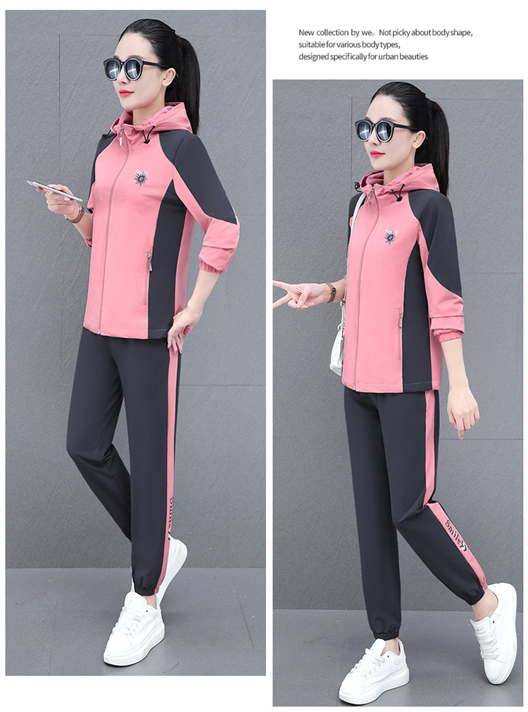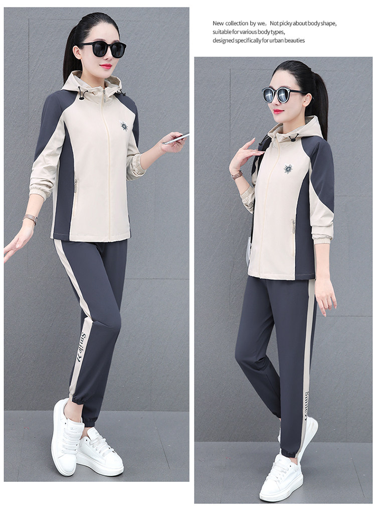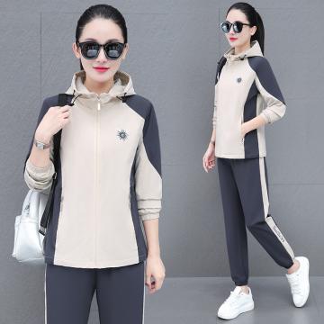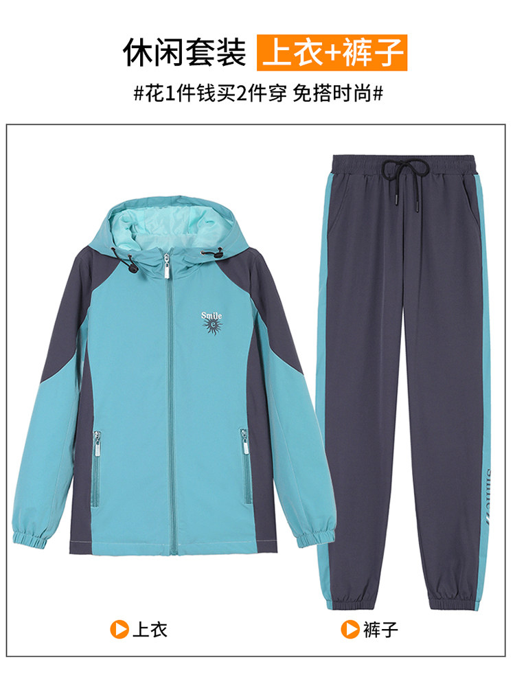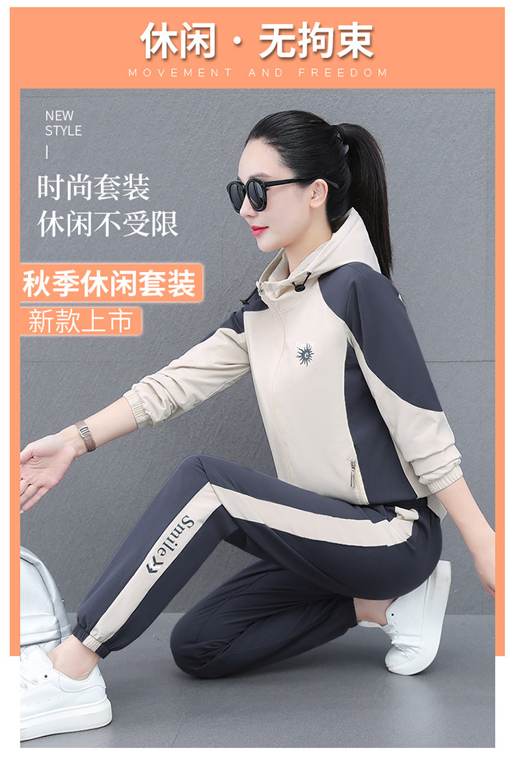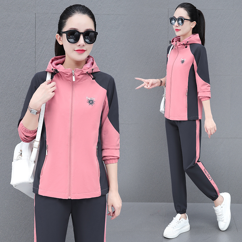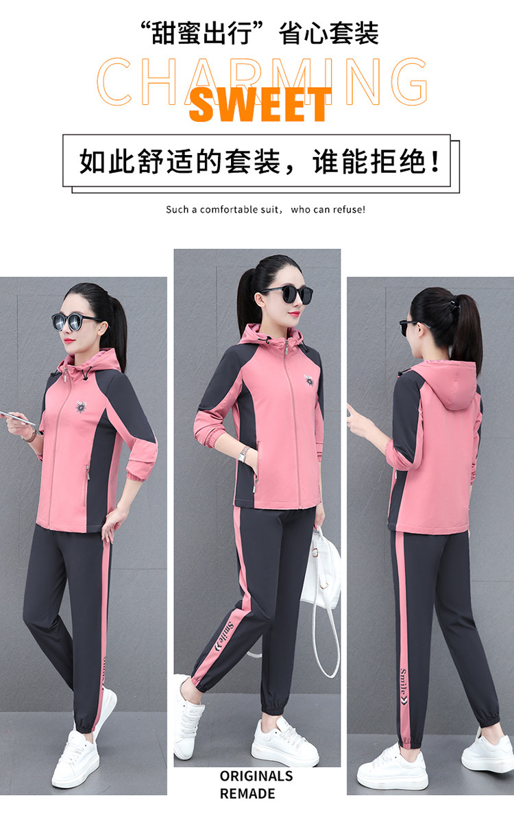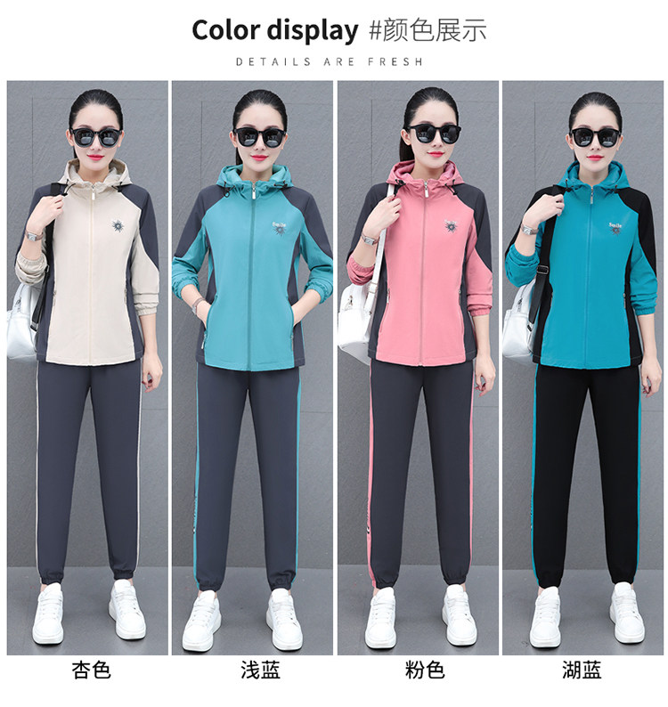 新款秋季新款冲锋衣套装女秋款女装休闲户外跑步服女套装两件套 服裝批發女裝批發服飾貨源