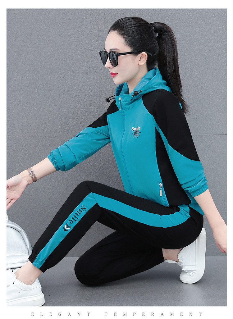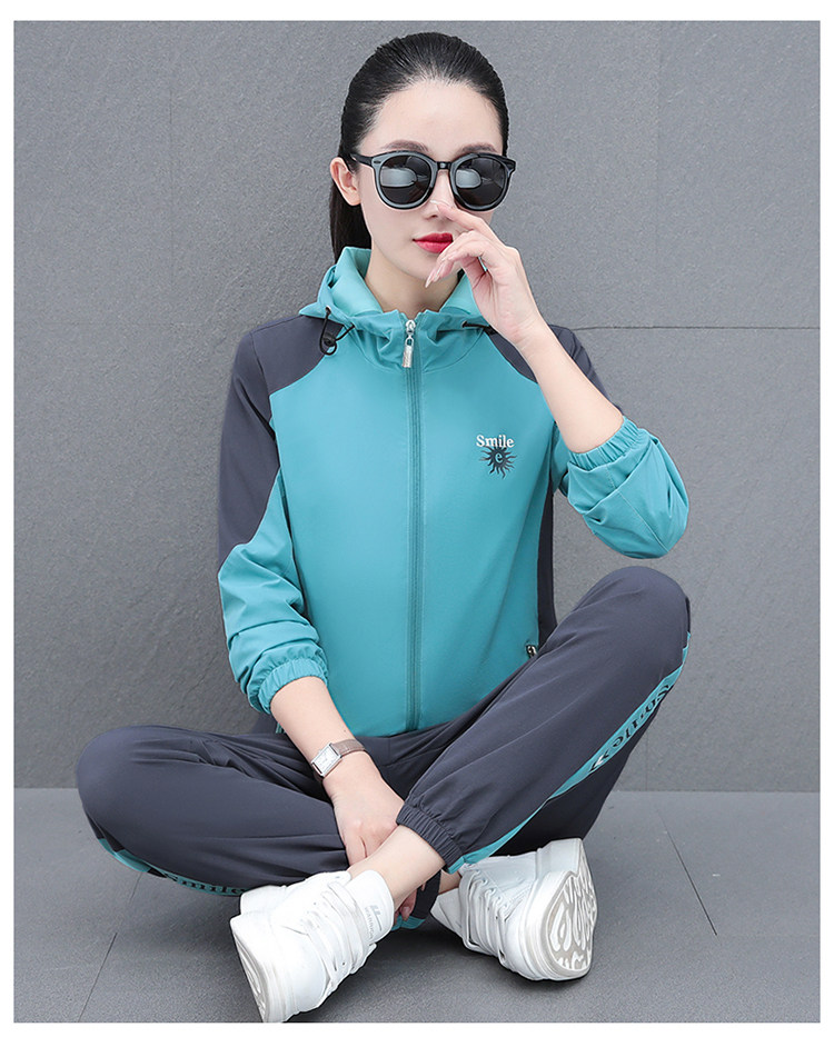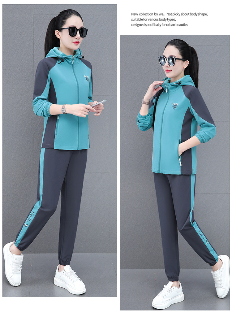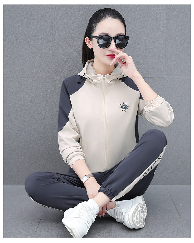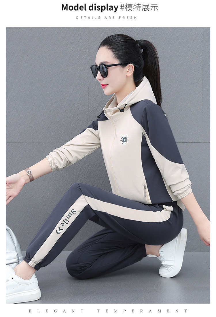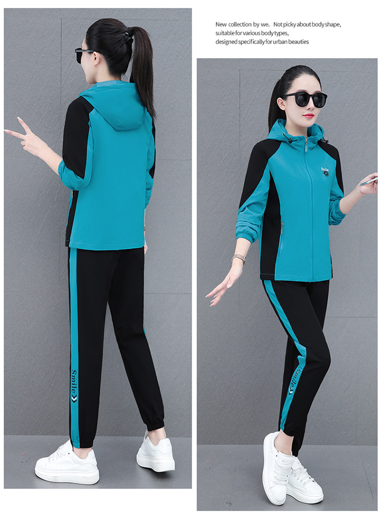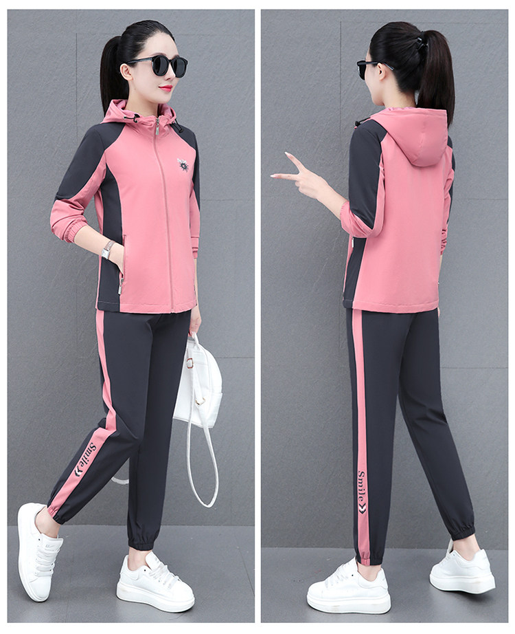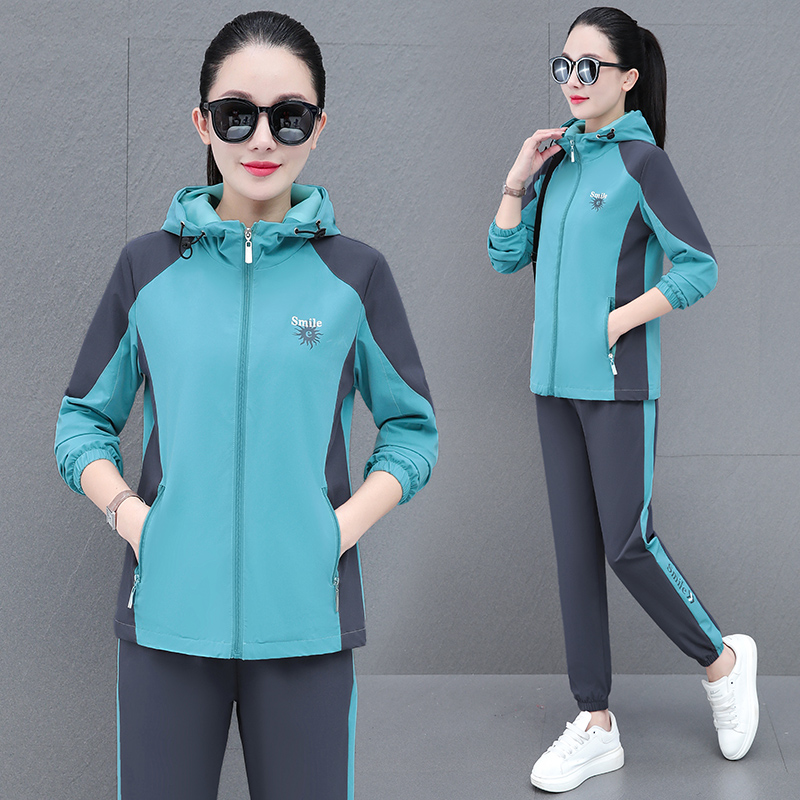 新款秋季新款冲锋衣套装女秋款女装休闲户外跑步服女套装两件套 服裝批發女裝批發服飾貨源