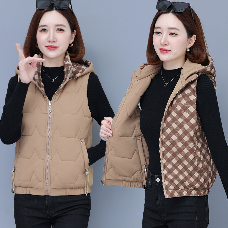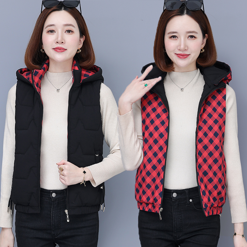FA52303# 冬季时尚新款双面穿加厚女款防风连帽马甲聚温保暖纯色百搭马甲 服裝批發女裝批發服飾貨源