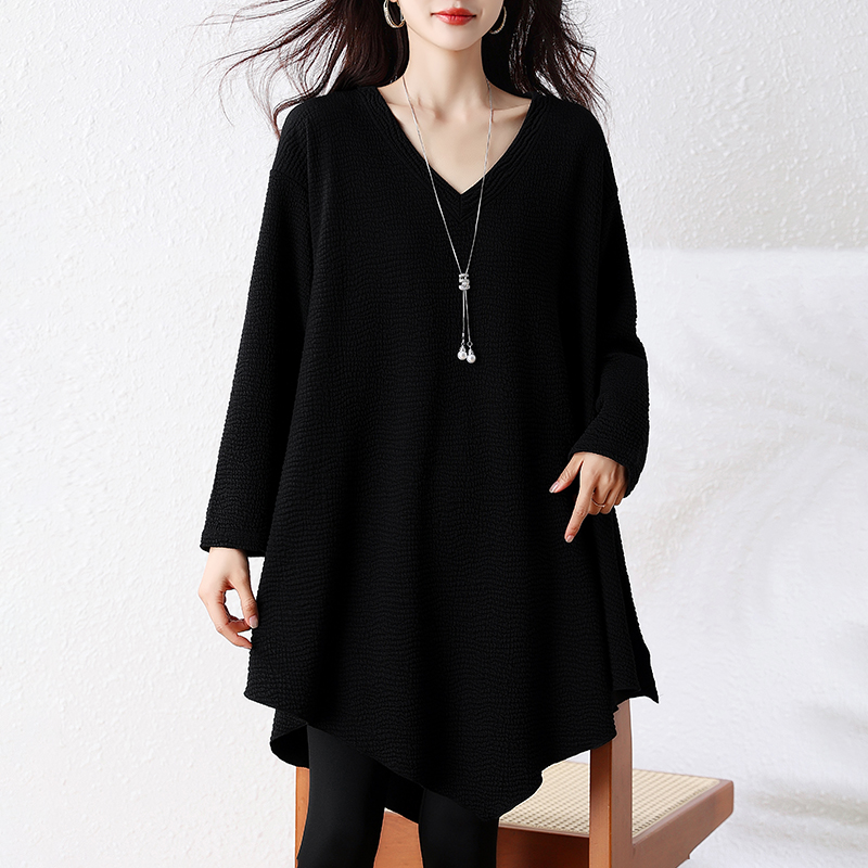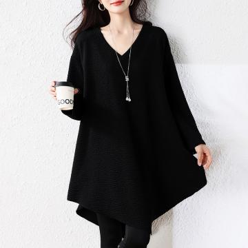 Home > 卫衣 > FA52333# 秋冬新款休闲洋气不规则胖mm大码v领百搭中长设计感上衣 服裝批發女裝批發服飾貨源