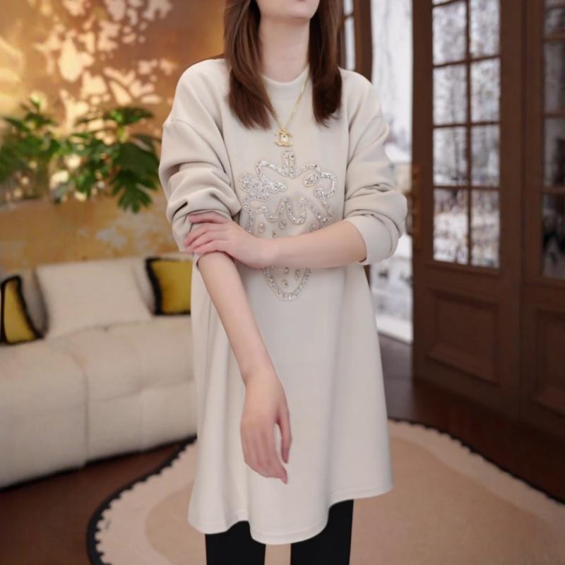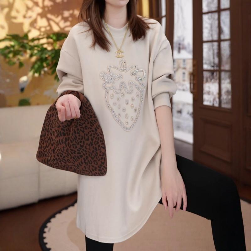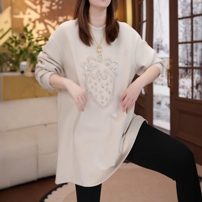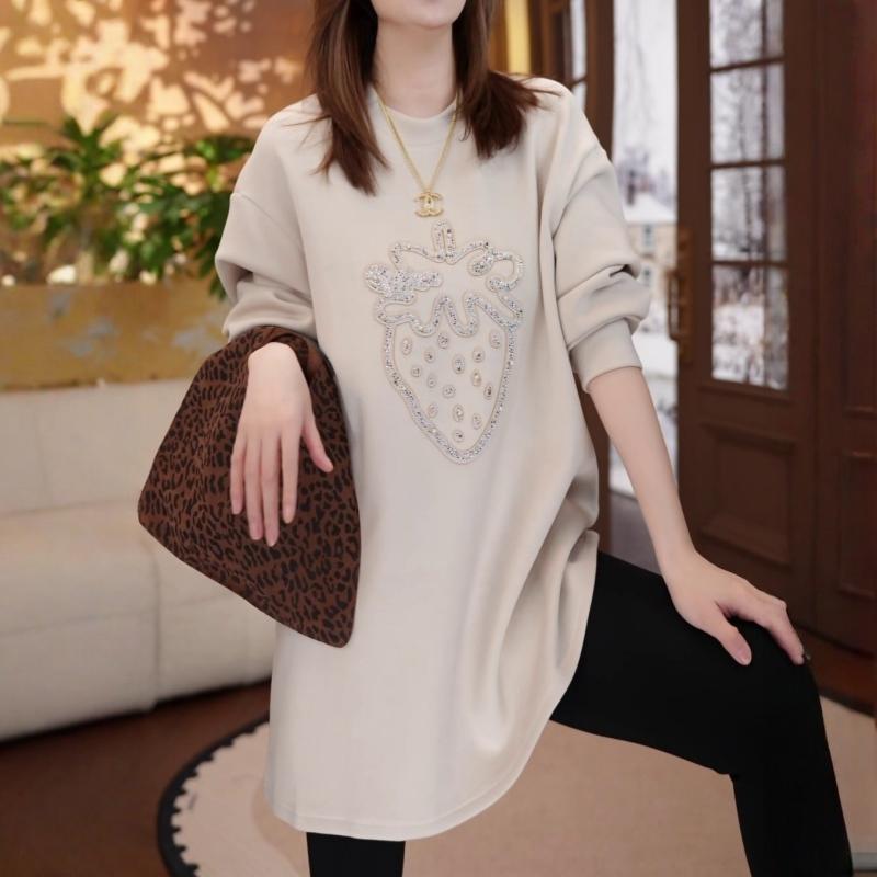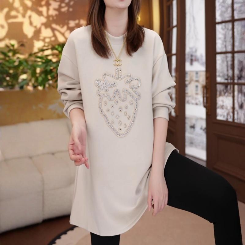 FA52377# 休闲百搭中长款上衣秋冬德绒磨毛内搭大码宽松保暖打底衫 服裝批發女裝批發服飾貨源