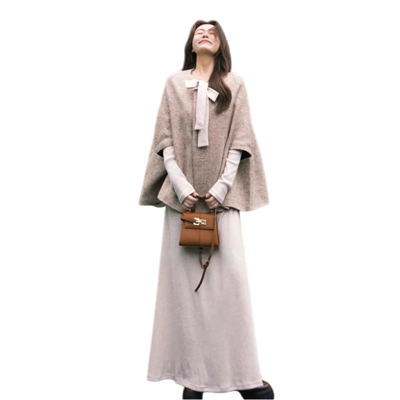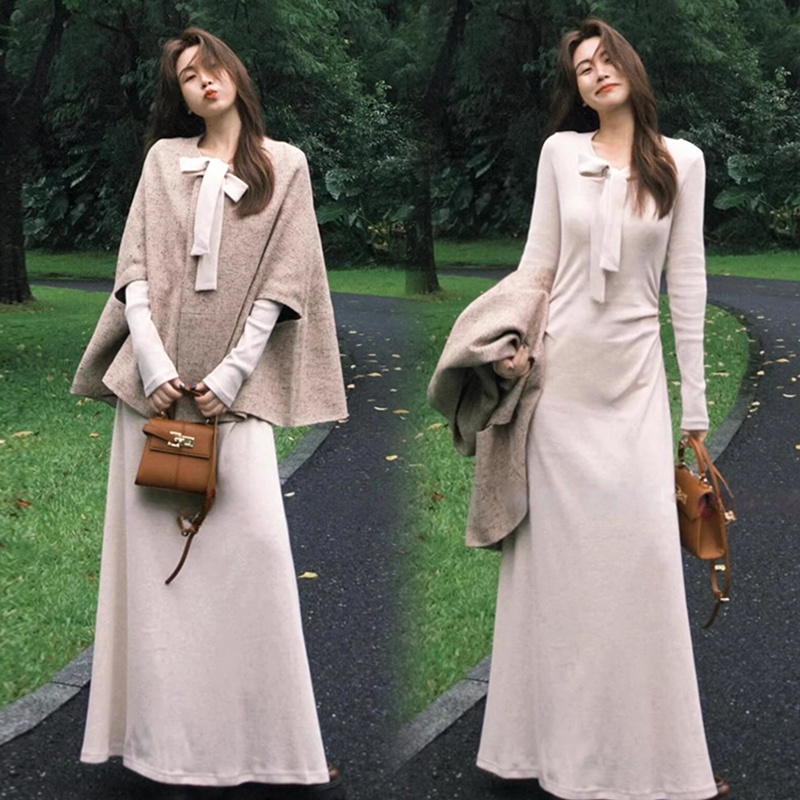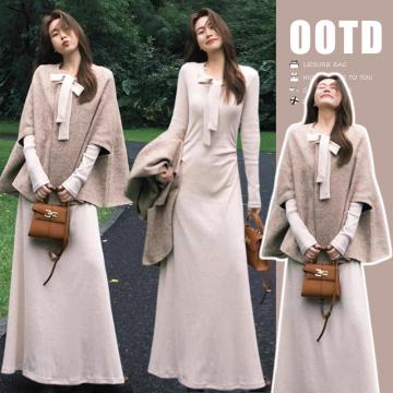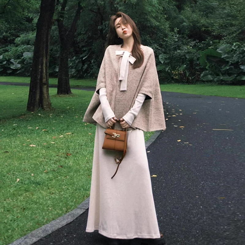 FA52456# 秋冬减龄气质连衣裙+韩版小香风斗篷呢子外套