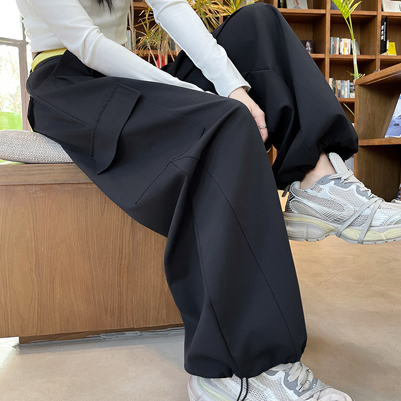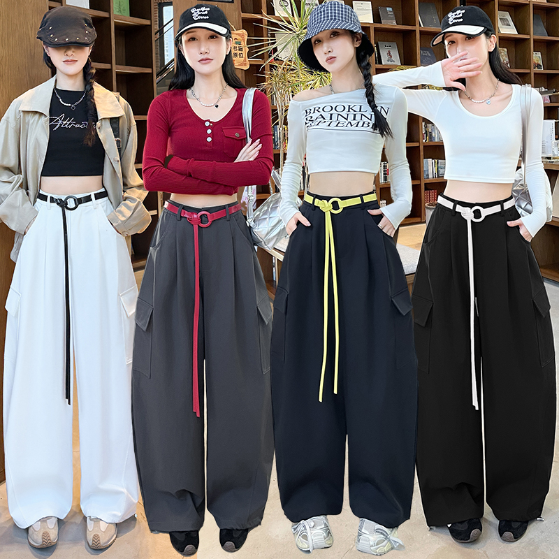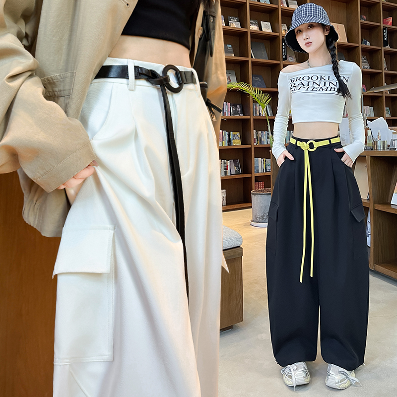 Home > 牛仔裤、长裤 > 美式阔腿腰带工装裤春秋季新款休闲裤女高腰宽松垂感弯刀裤