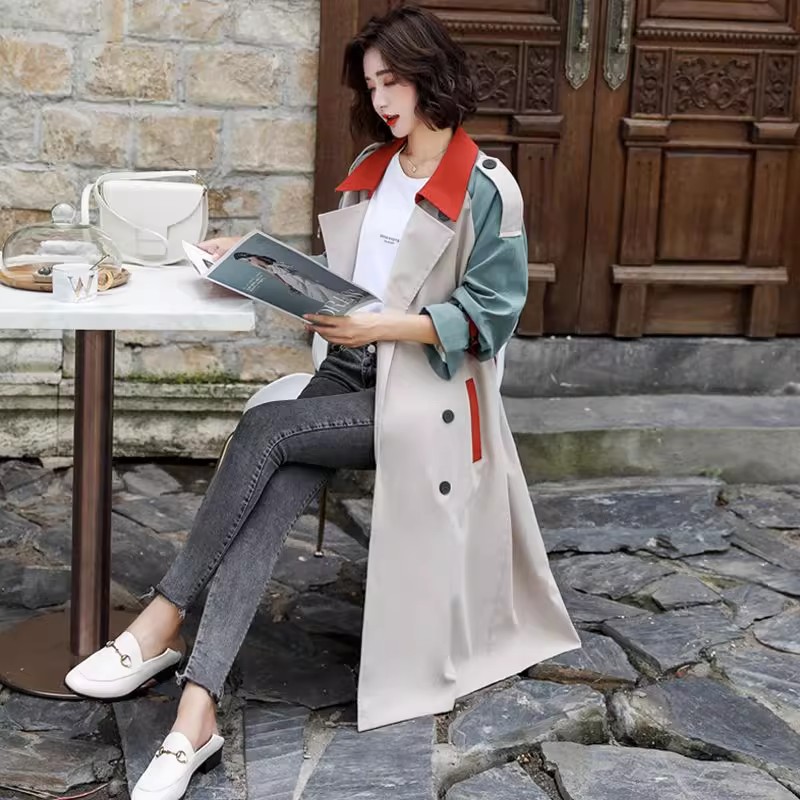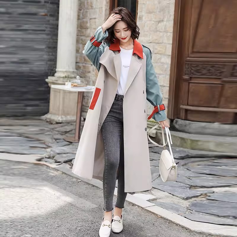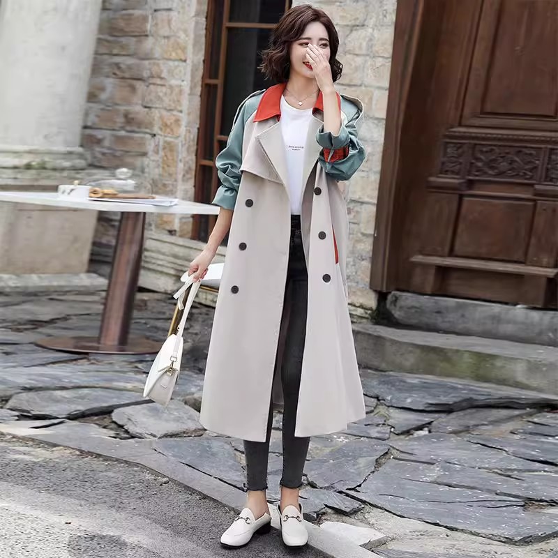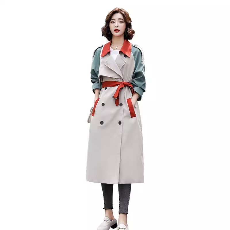 FA52577# 风衣女中长款英伦风秋季新款宽松百搭减龄显瘦大码拼接外套女 服裝批發女裝批發服飾貨源