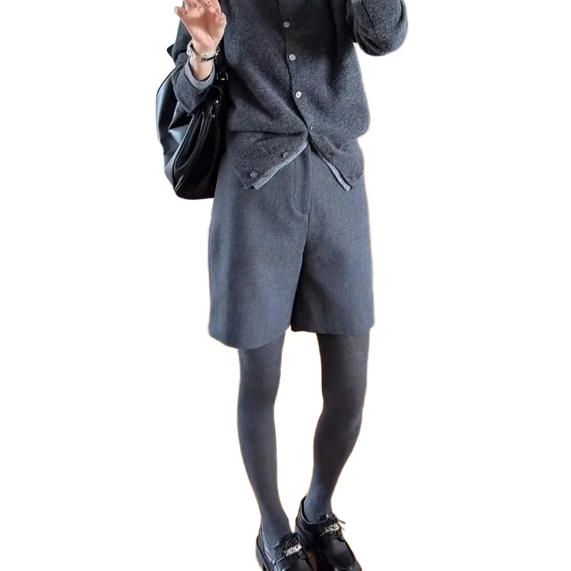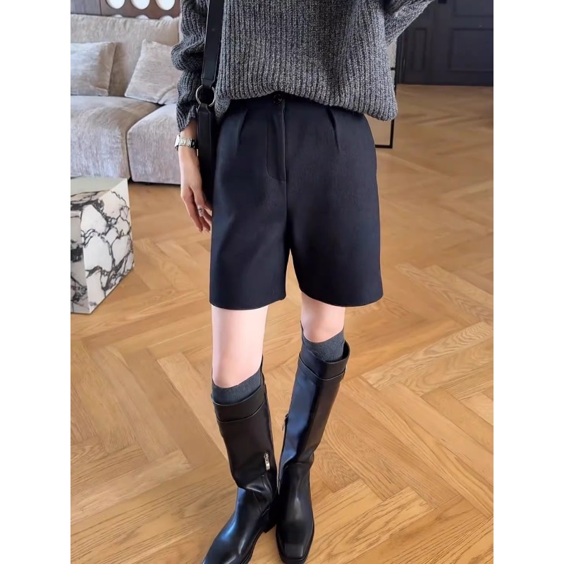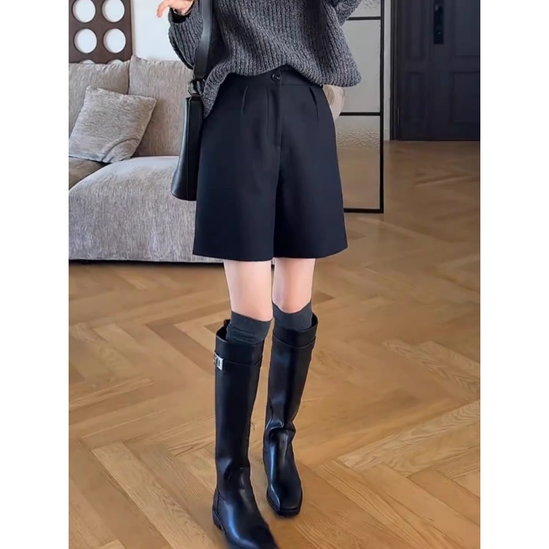 FA52605# 大码韩版灰色毛呢阔腿裤女秋冬季新款高腰靴裤胖MM显瘦短裤子 服裝批發女裝批發服飾貨源