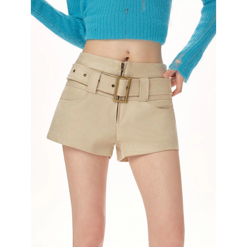 FA52606# 大码复古鹿皮绒短裤女秋冬季新款小个子外穿高腰显瘦休闲a字靴裤 服裝批發女裝批發服飾貨源