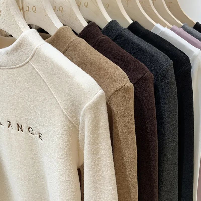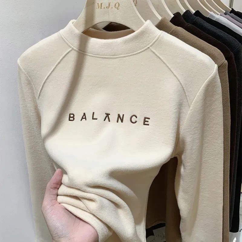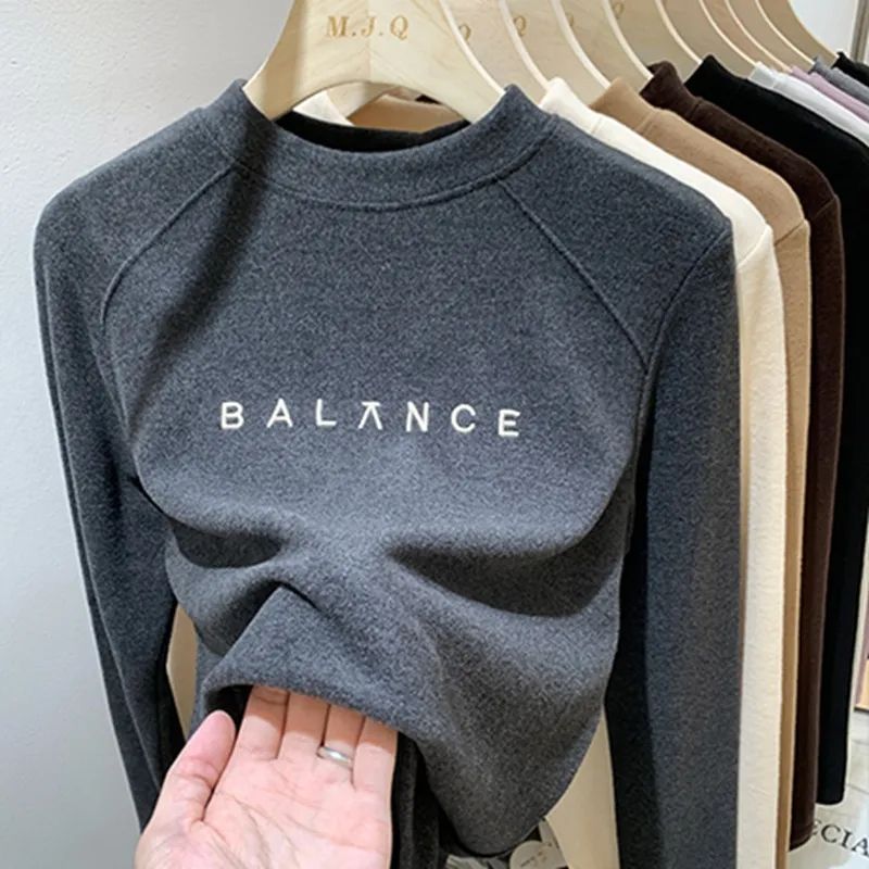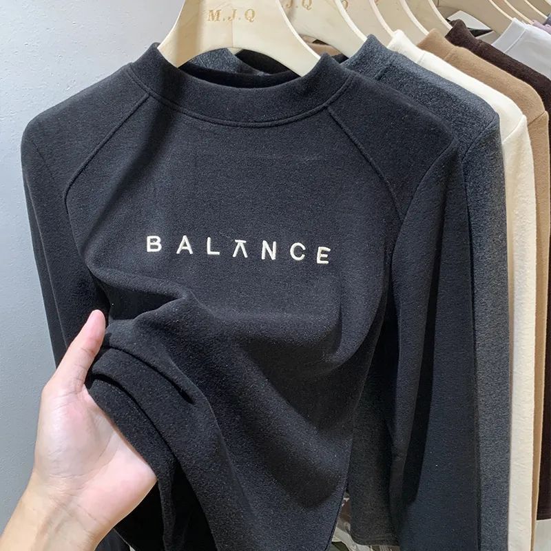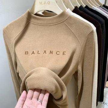 FA52611# 网红爆款胖MM大码字母刺绣打底衫女新款秋冬德绒保暖长袖t恤上衣 服裝批發女裝批發服飾貨源