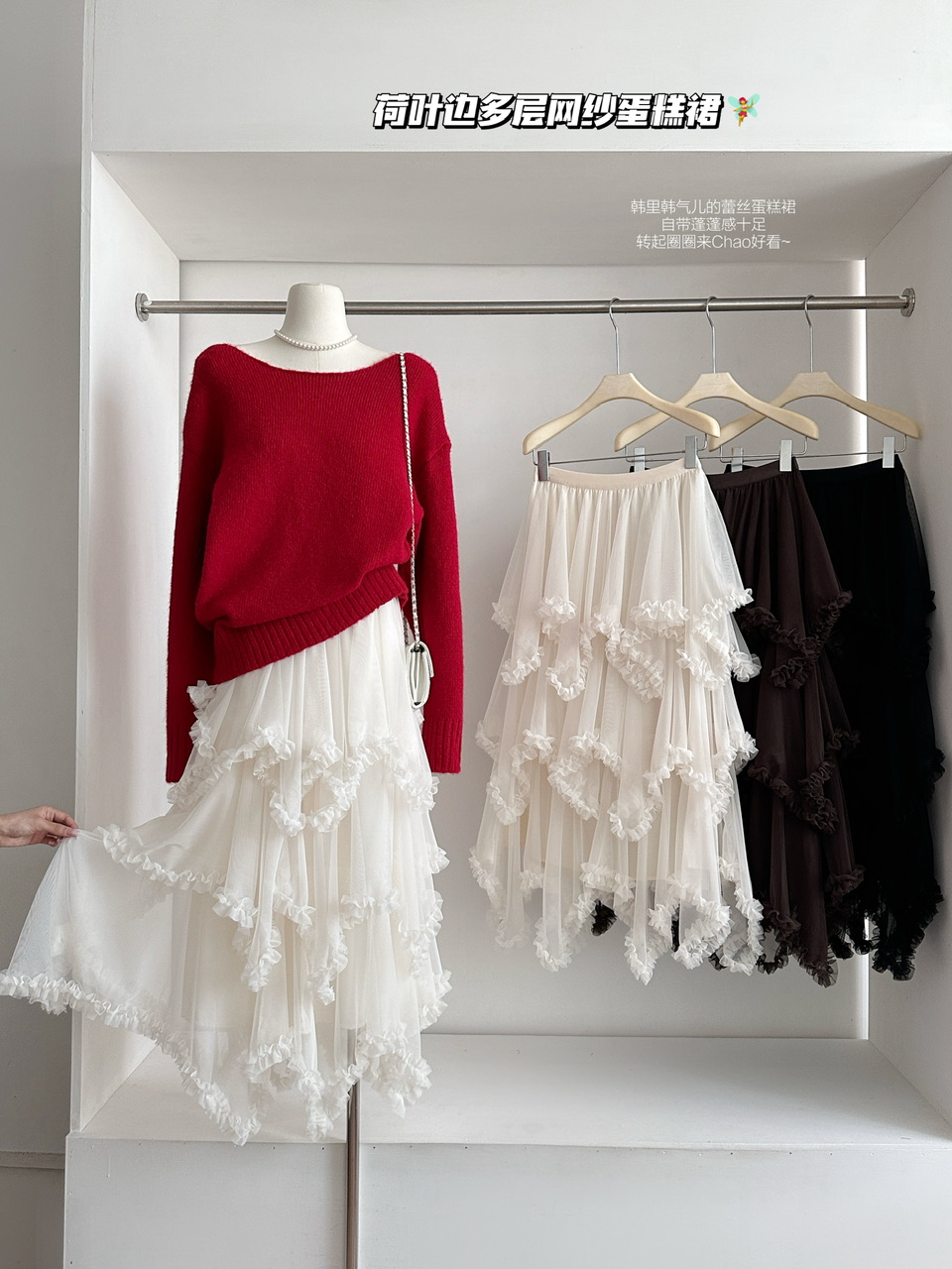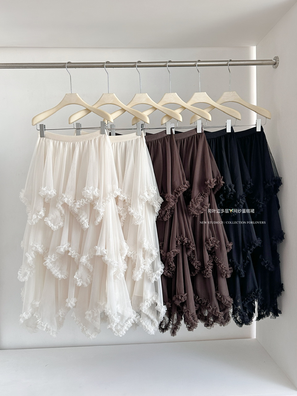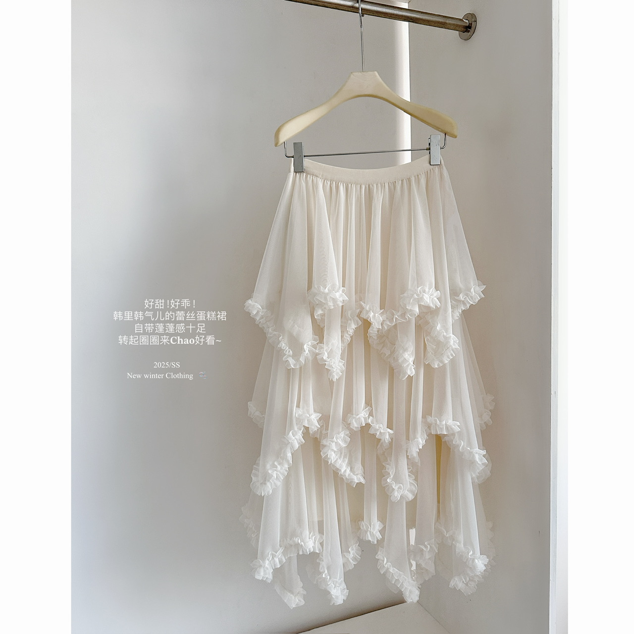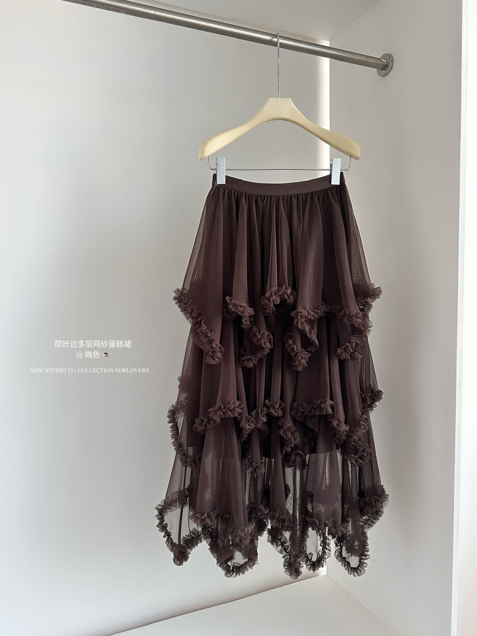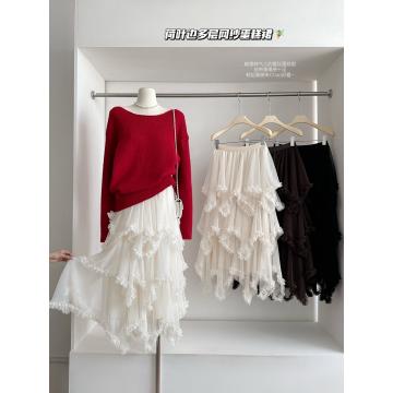 FA53167# 荷叶边不规则多层网纱蛋糕裙中长款高腰A字仙女半裙 服裝批發女裝批發服飾貨源
