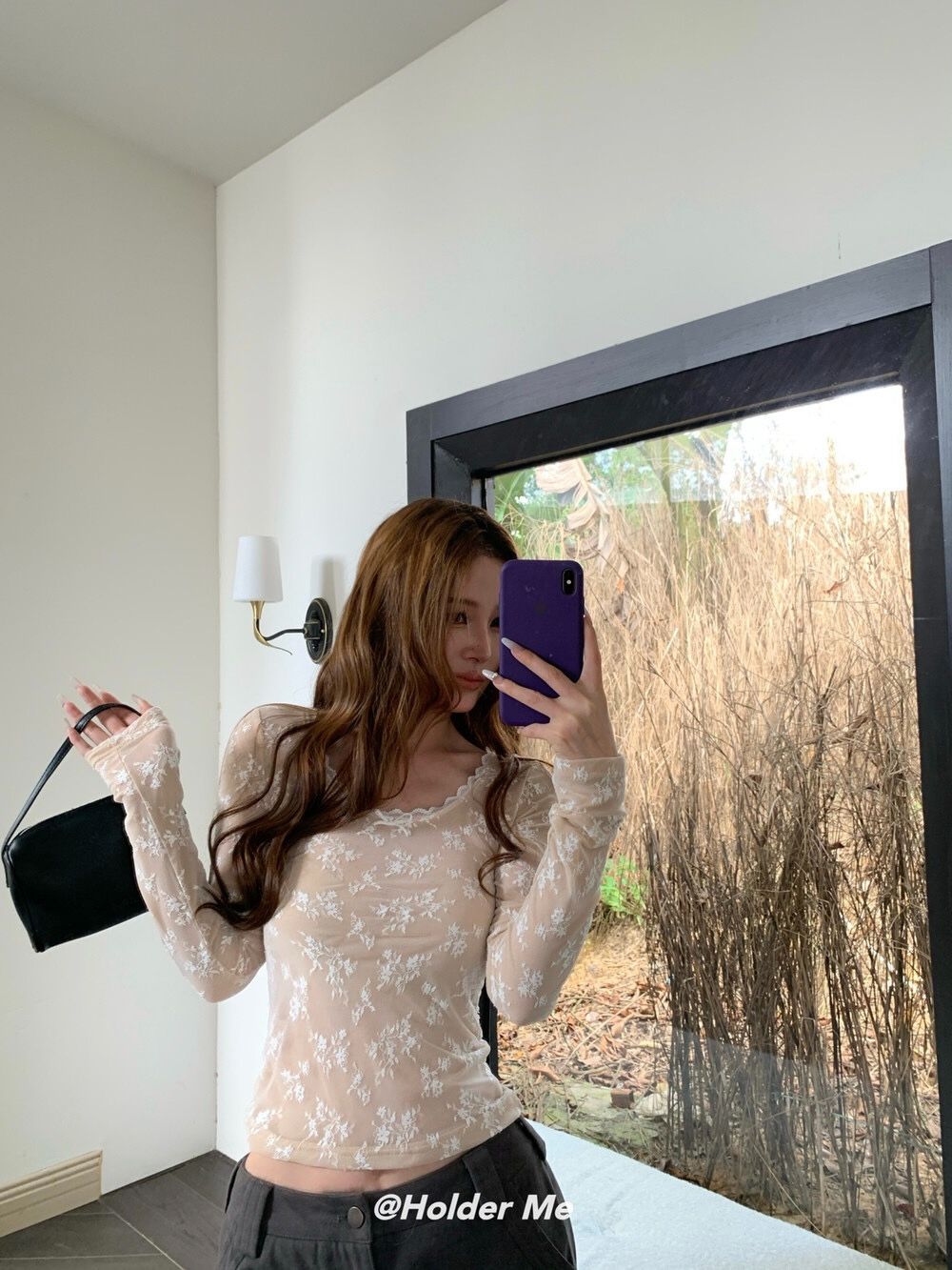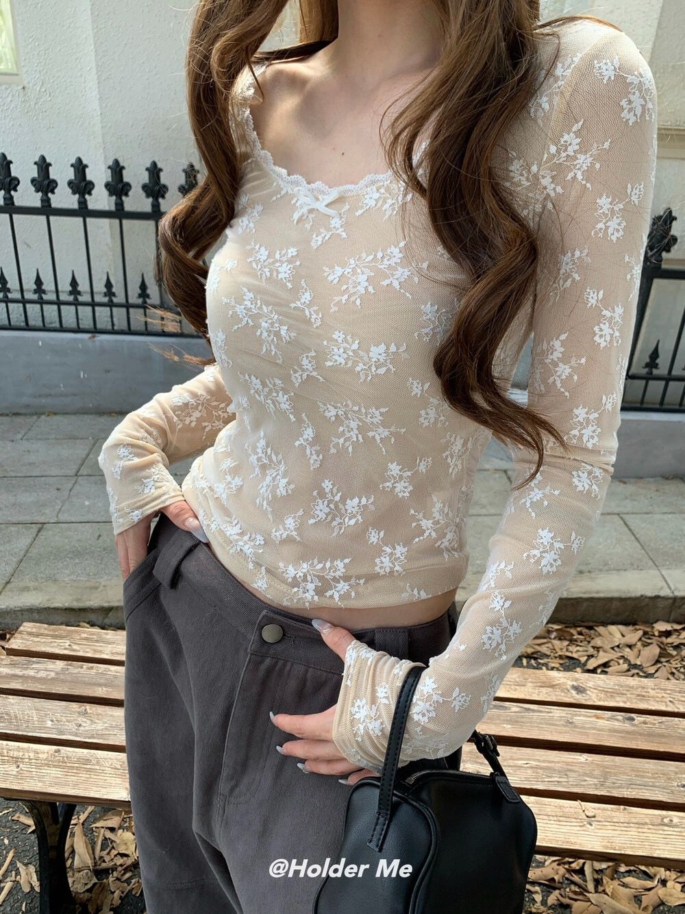 FA53298# 新款温柔纯欲打底衫蕾丝花边蝴蝶结T恤上衣 服裝批發女裝批發服飾貨源