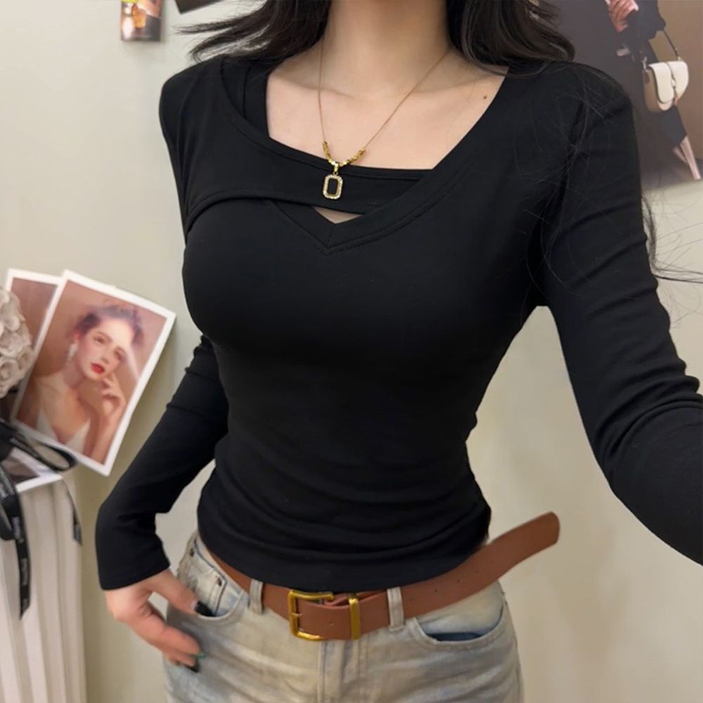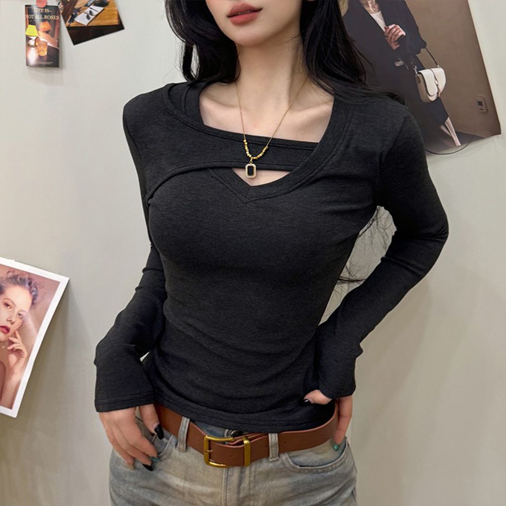 FA53301# 秋冬新款加厚磨毛V领拼接时尚显瘦设计款打底衫上衣 服裝批發女裝批發服飾貨源