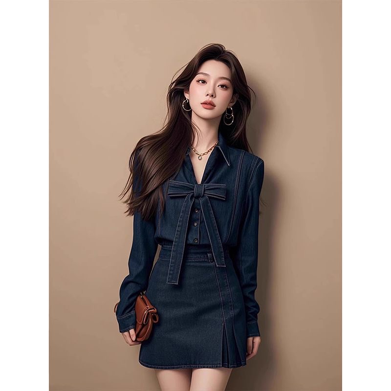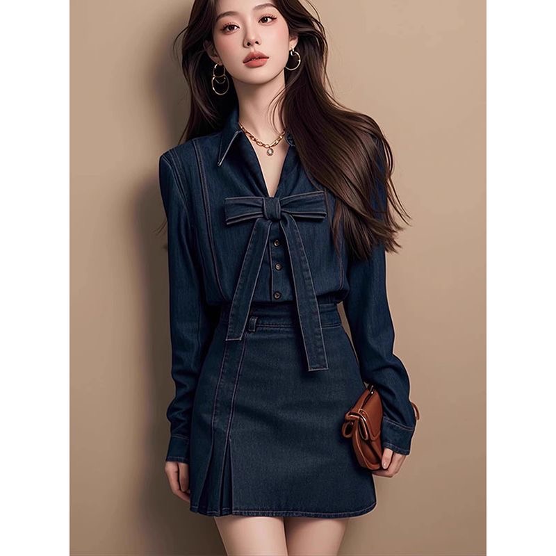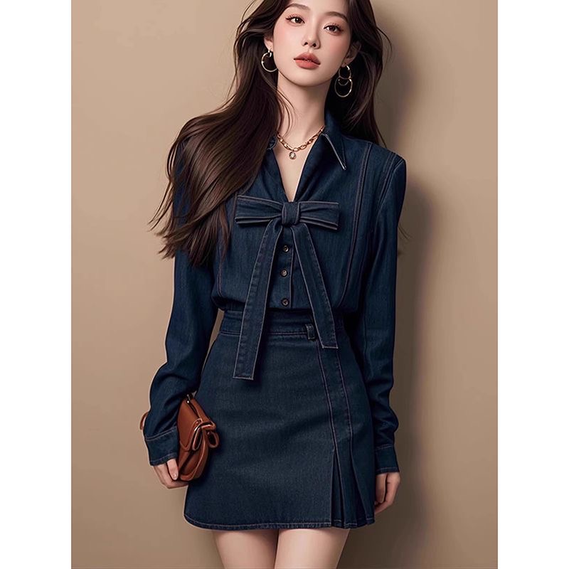 FA53323# 辣妹小香风蓝色牛仔两件套装裙女春季穿搭ootd一整套高级感小个子 服裝批發女裝批發服飾貨源