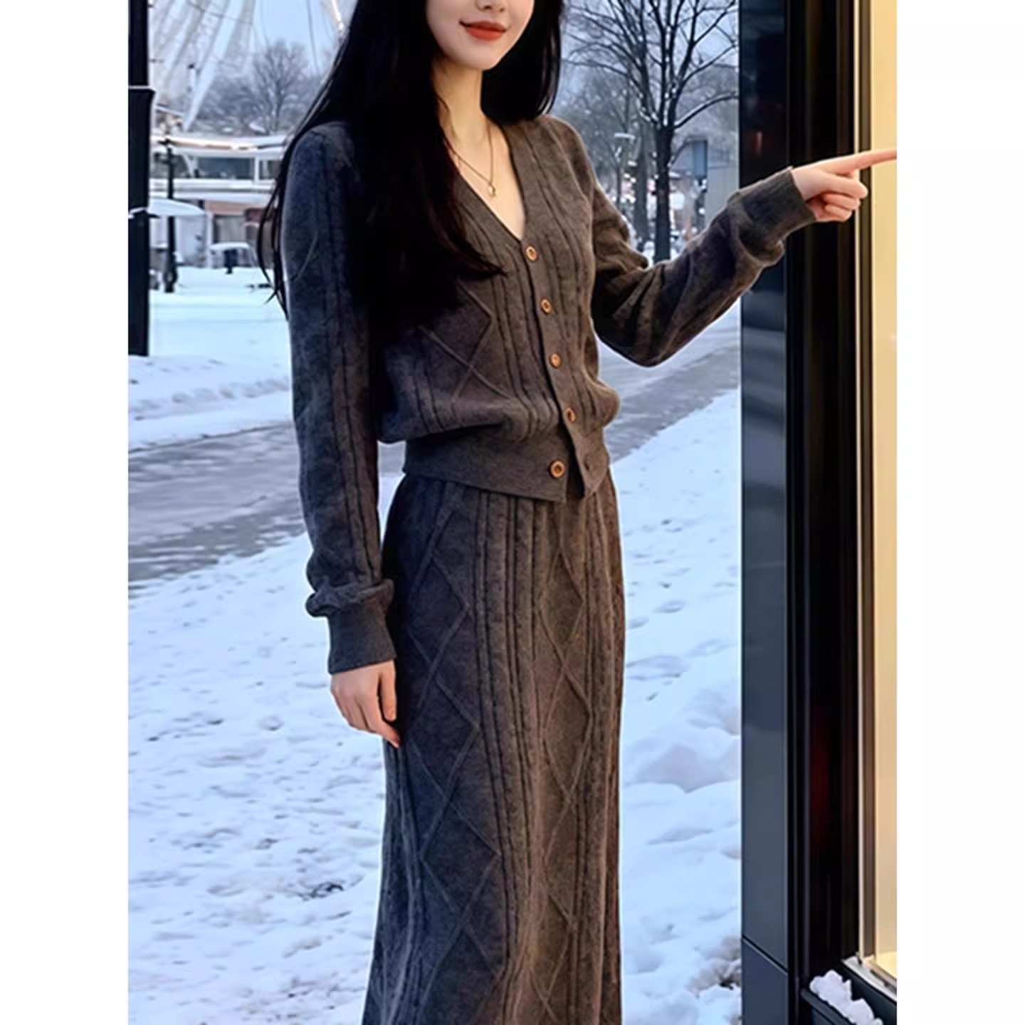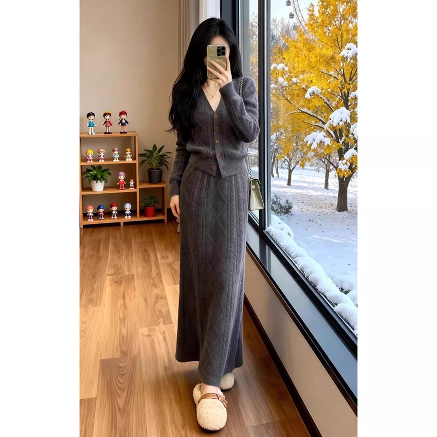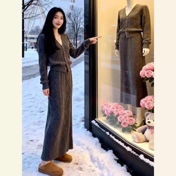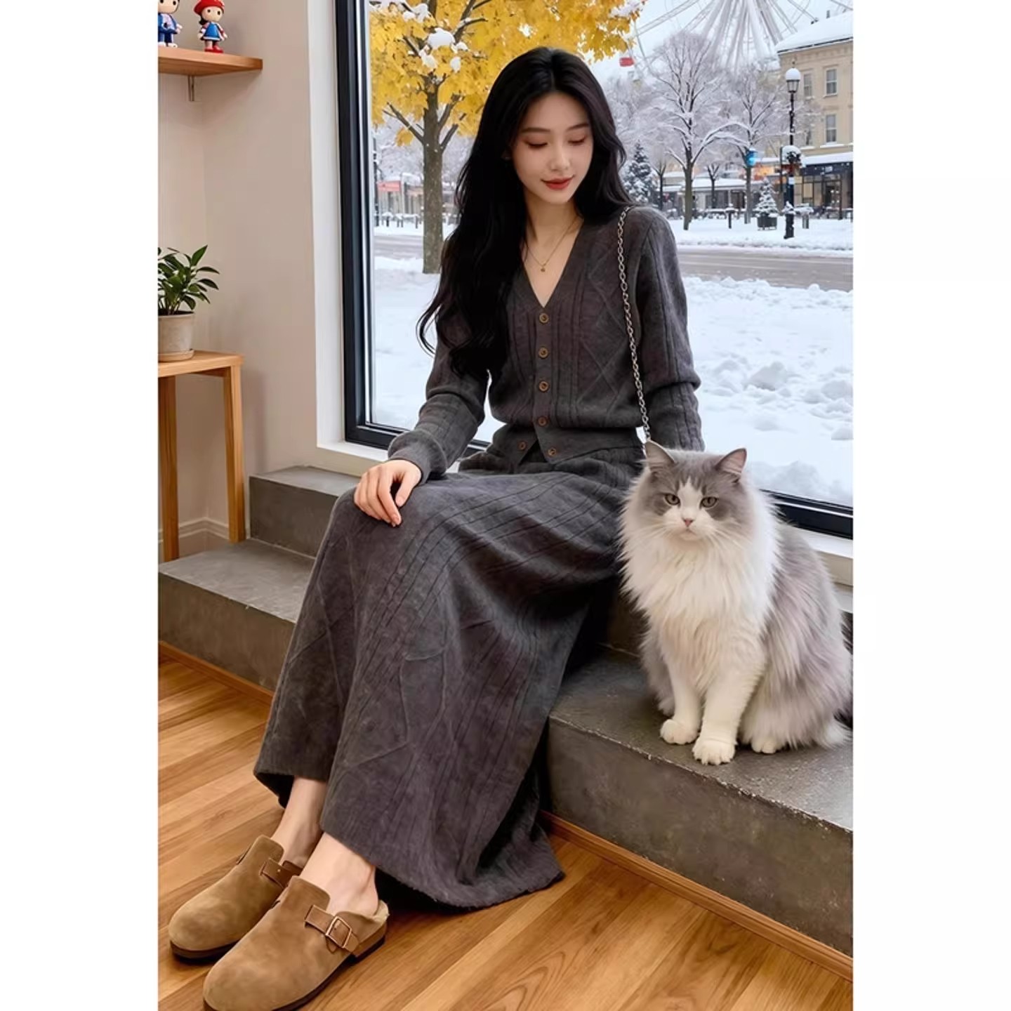 FA53390# 上架72小时有货-冬季超火一整套轻奢高级感穿搭灰色针织衫套装女 服裝批發女裝批發服飾貨源