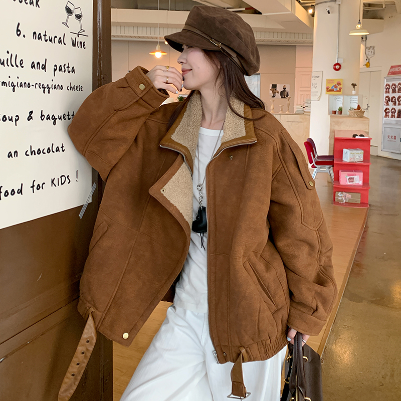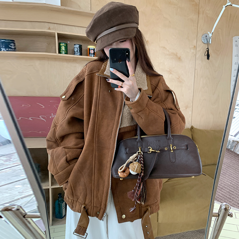 FA53475# 冬季新款高级感羊羔毛皮毛一体厚外套女士机车皮夹克上衣
