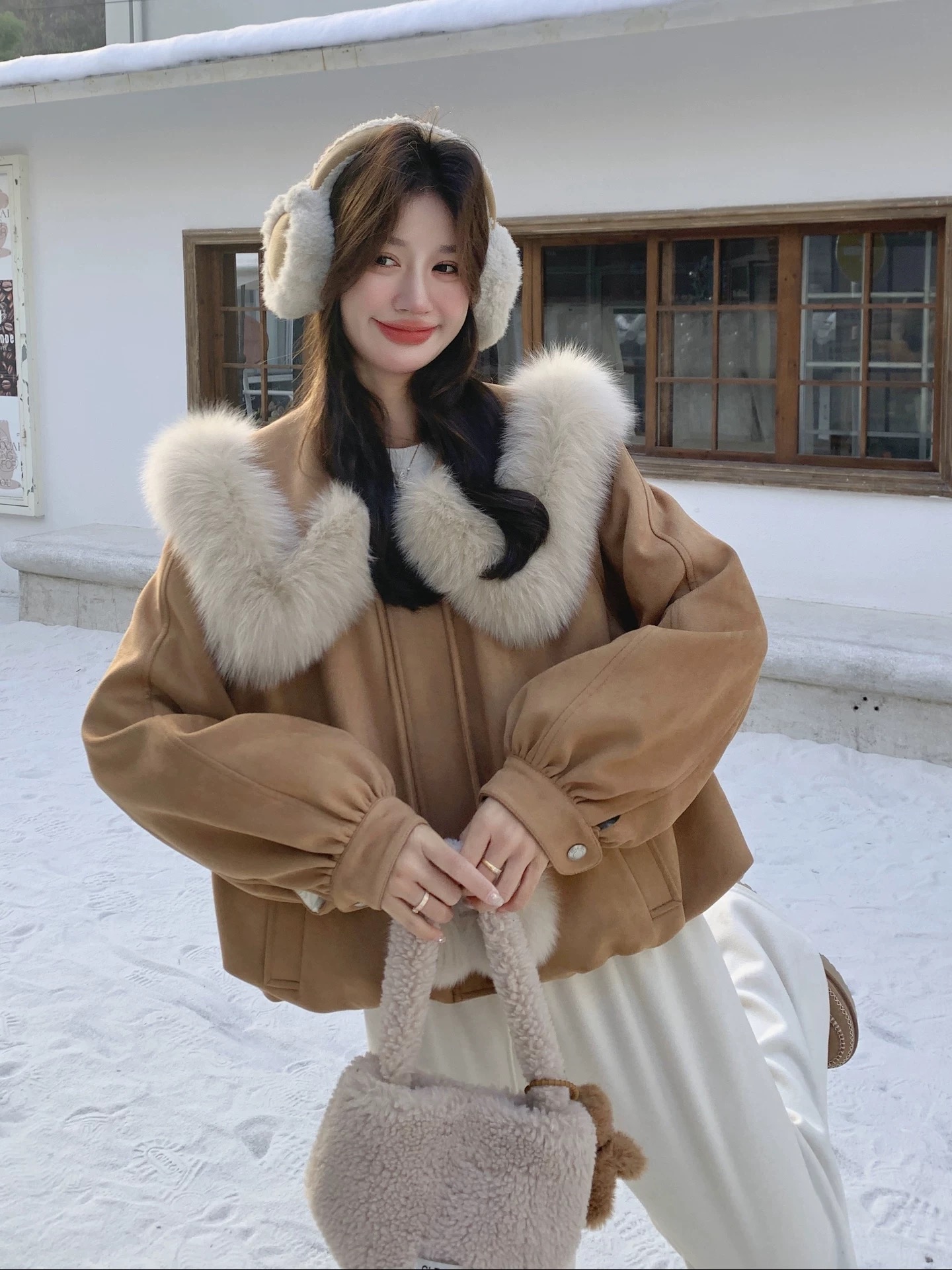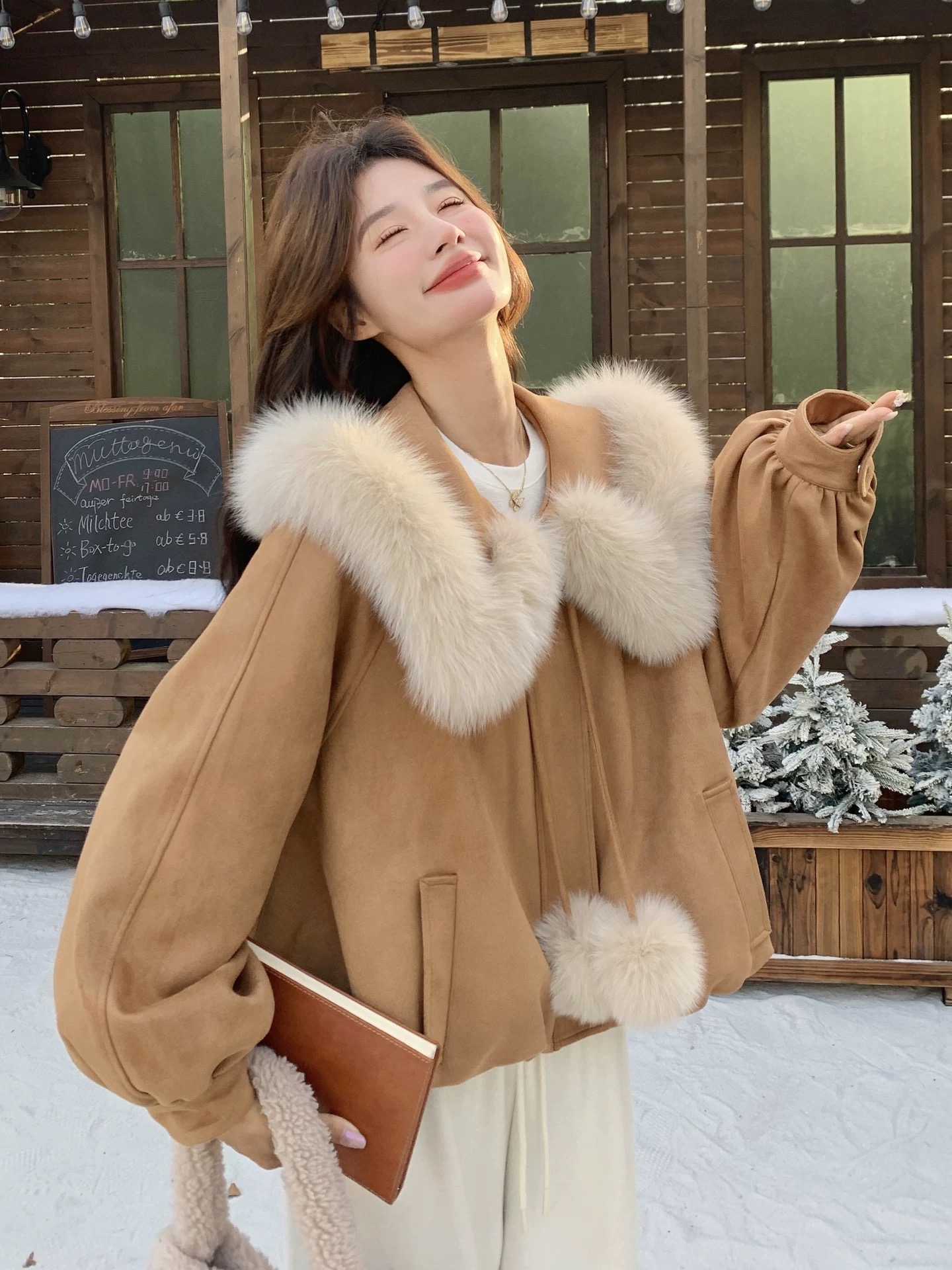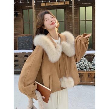 FA53481# 棕色气质轻奢大毛领夹克棉服女冬季新款短款甜美减龄