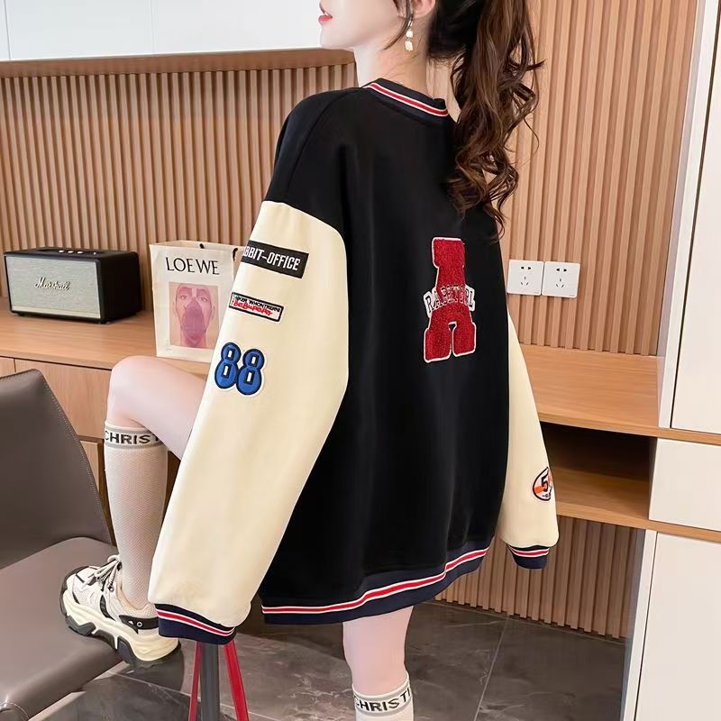 FA53620# 韩系设计感棒球服外套女新款宽松大码学生时尚撞色开衫