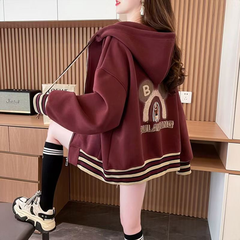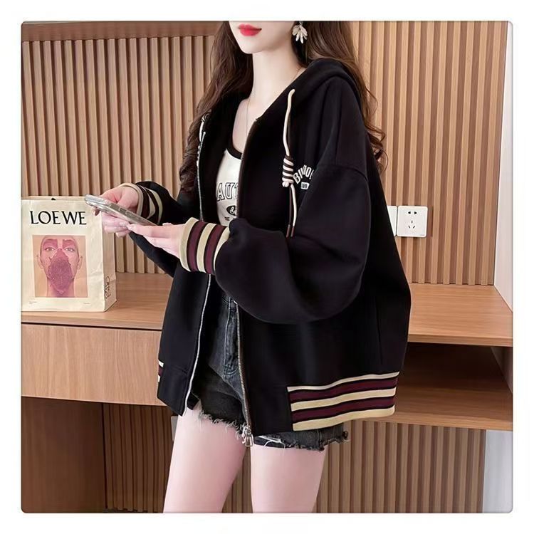 FA53623# 美式复古连帽拉连开衫女春季爆款高级感超好看棒球服外套