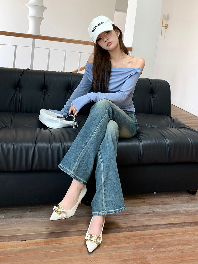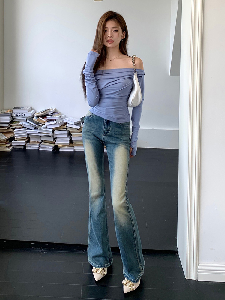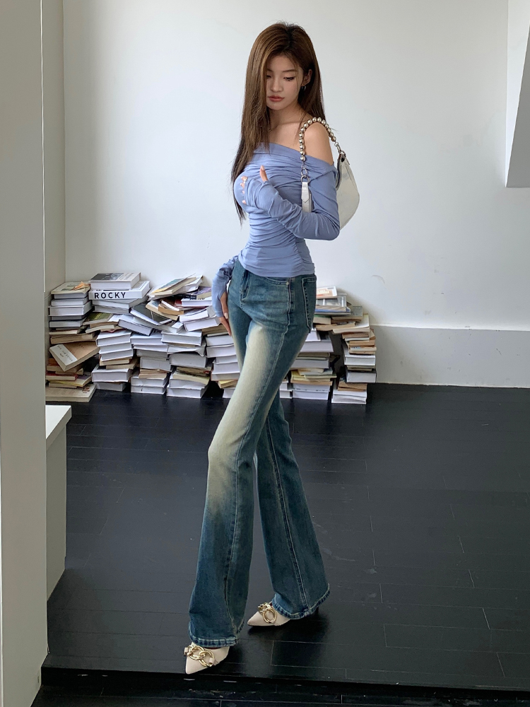 FA53670# 春夏新款美式复古微喇叭牛仔裤女拖地阔腿裤显高显瘦长裤