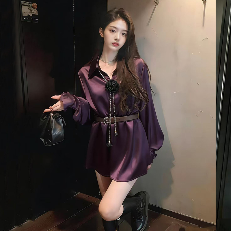 FA54350# 春装新款缎面衬衫不规则气质上衣配腰带 服裝批發女裝批發服飾貨源