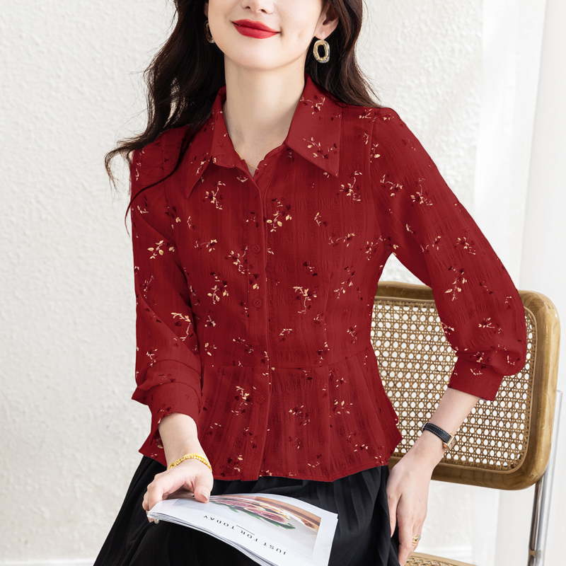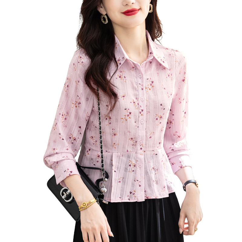 FA54588# 春季新品棉麻清新小碎花设计感收腰女士长袖小衫 服裝批發女裝批發服飾貨源