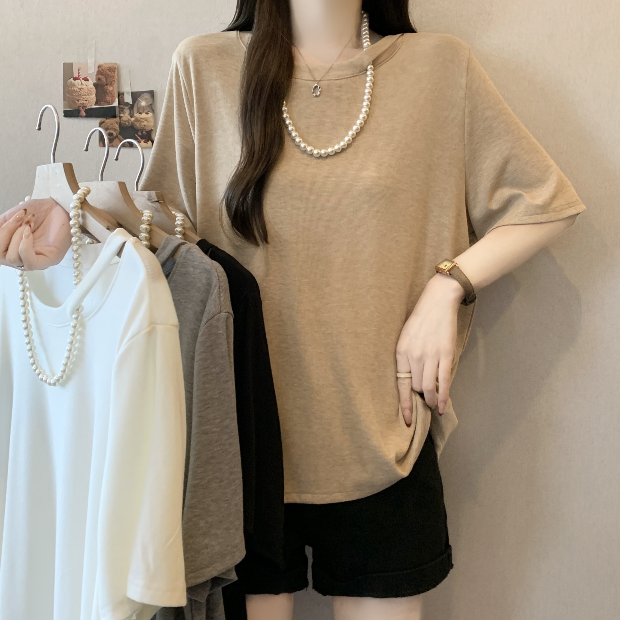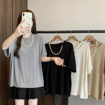 FA55067# 大码夏季新款时尚洋气设计感珍珠针织短袖T恤女修身休闲 服裝批發女裝批發服飾貨源
