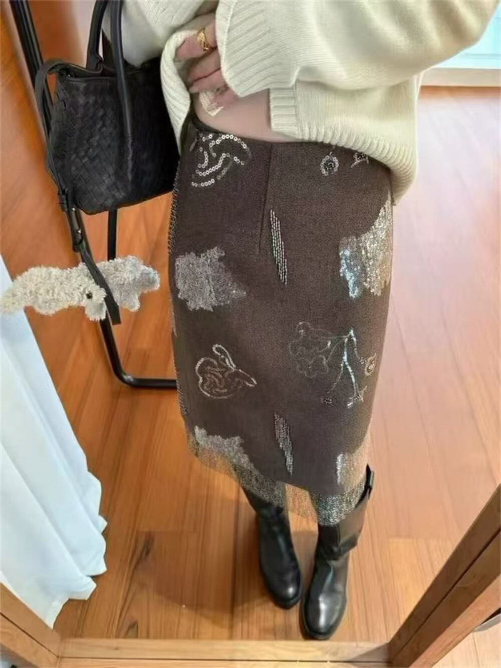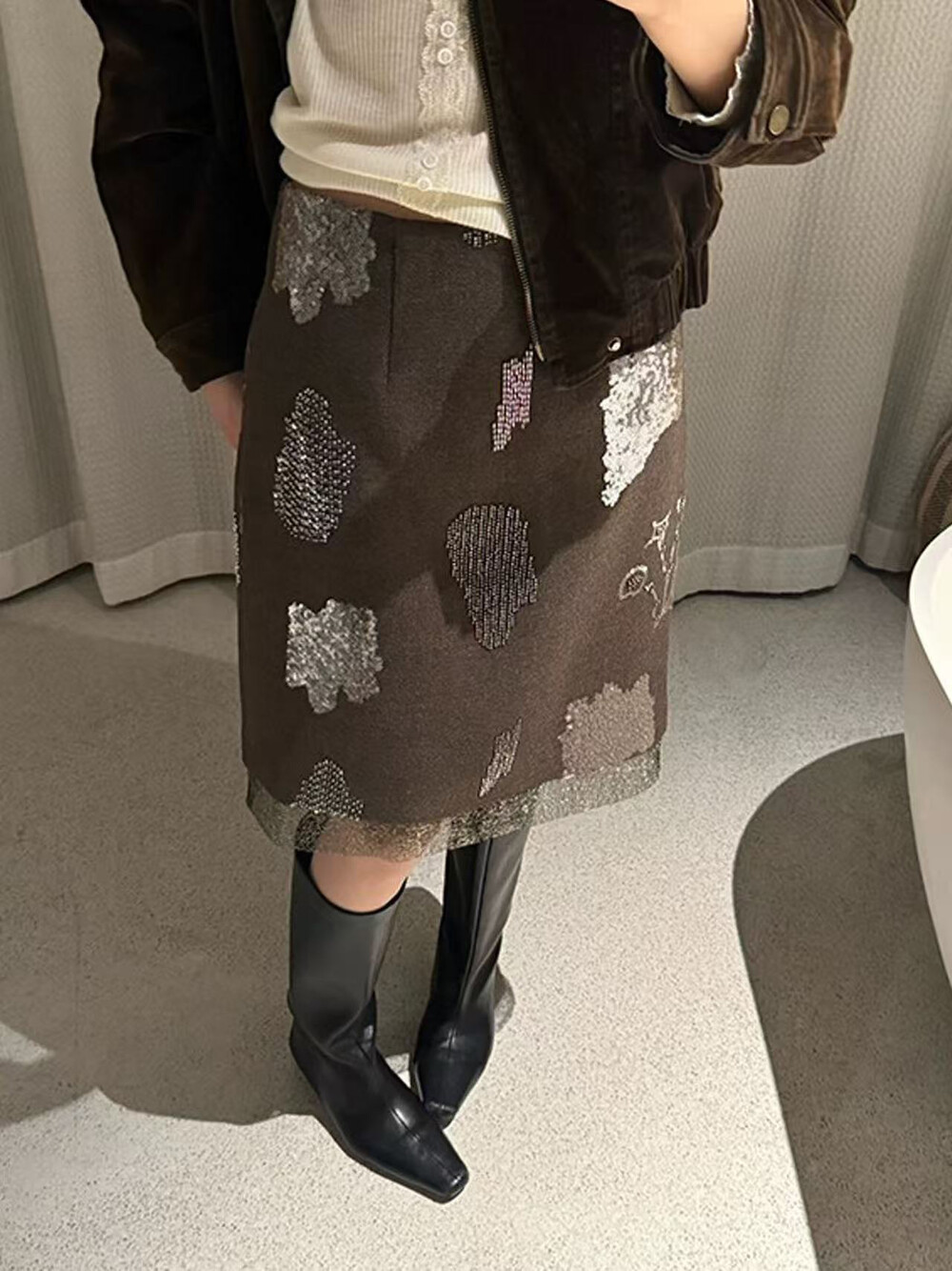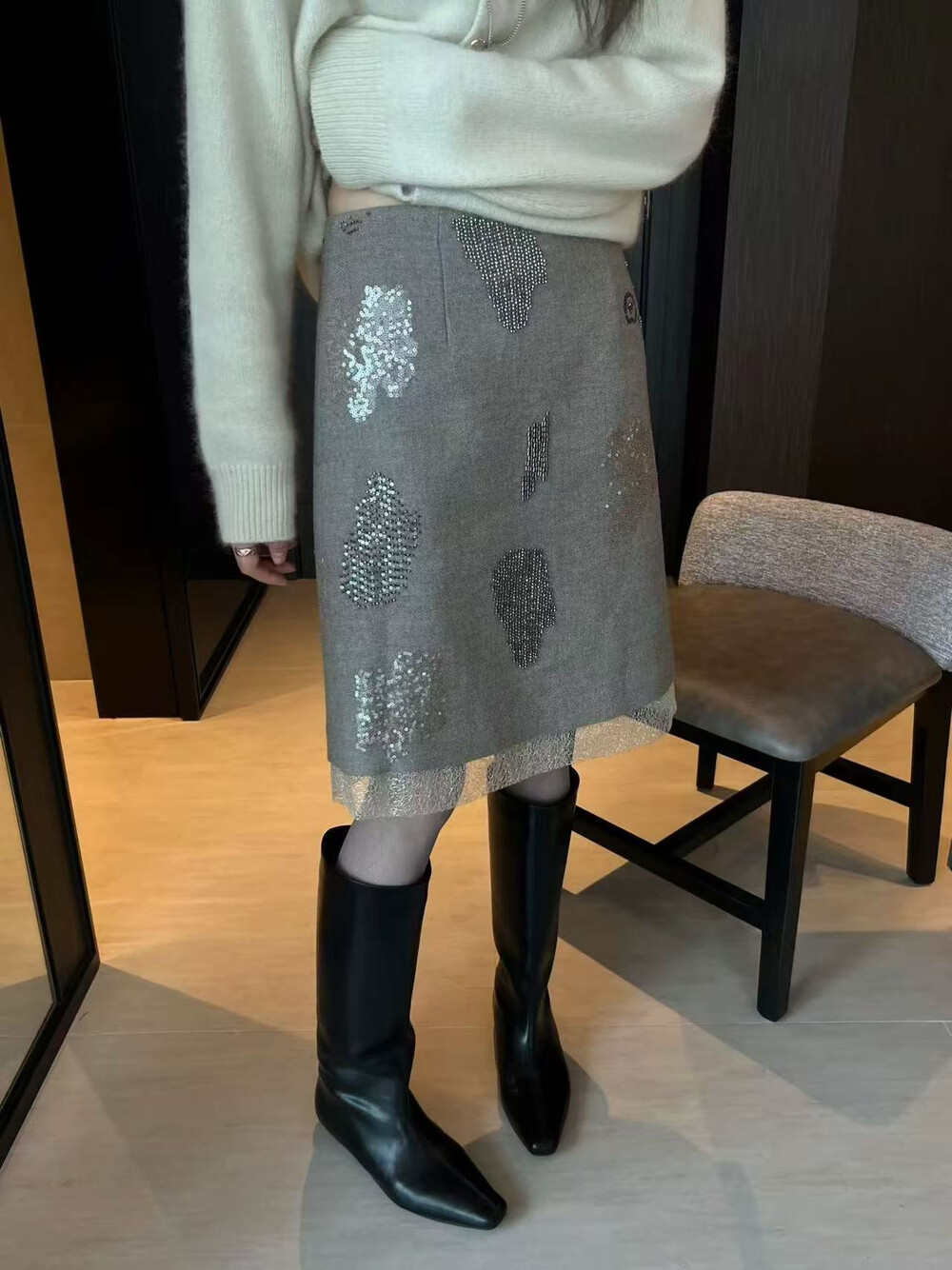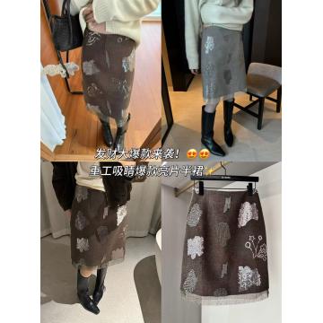 FA55078# 26年早春复古小女人亮晶晶假两层半身裙 服裝批發女裝批發服飾貨源