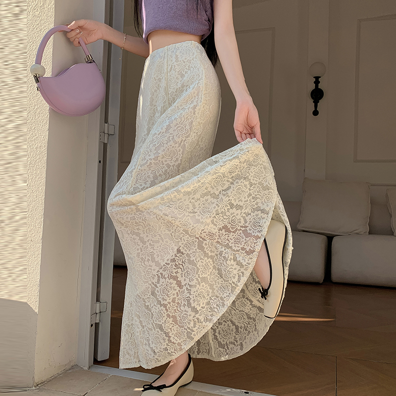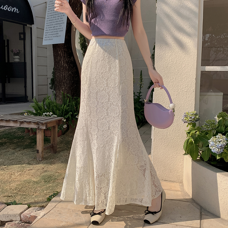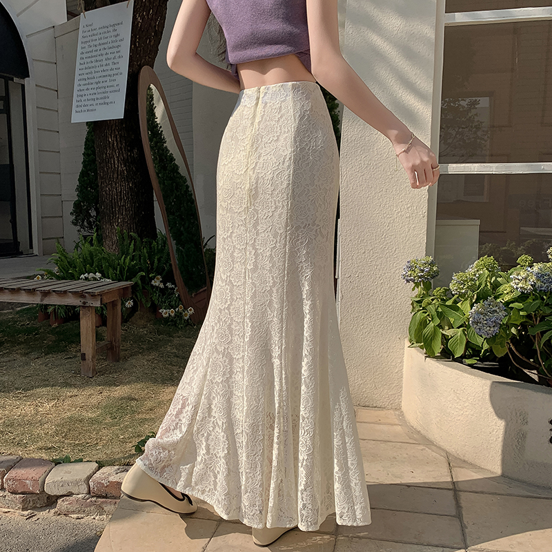 FA55091# 春夏季新款蕾丝鱼尾裙高腰显瘦白色秋季小个子半身裙内搭打底 服裝批發女裝批發服飾貨源