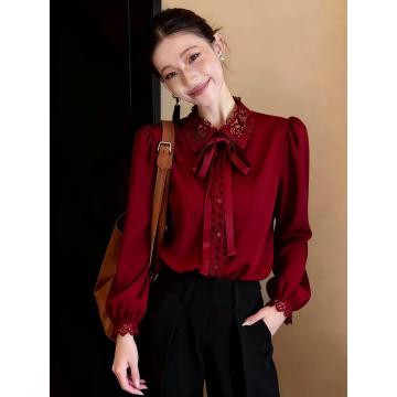 Home > 长袖雪纺衫、衬衫、上衣 > FA55136# 法式复古高级感蝴蝶结设计红色长袖上衣女春季新款显瘦穿搭潮 服裝批發女裝批發服飾貨源