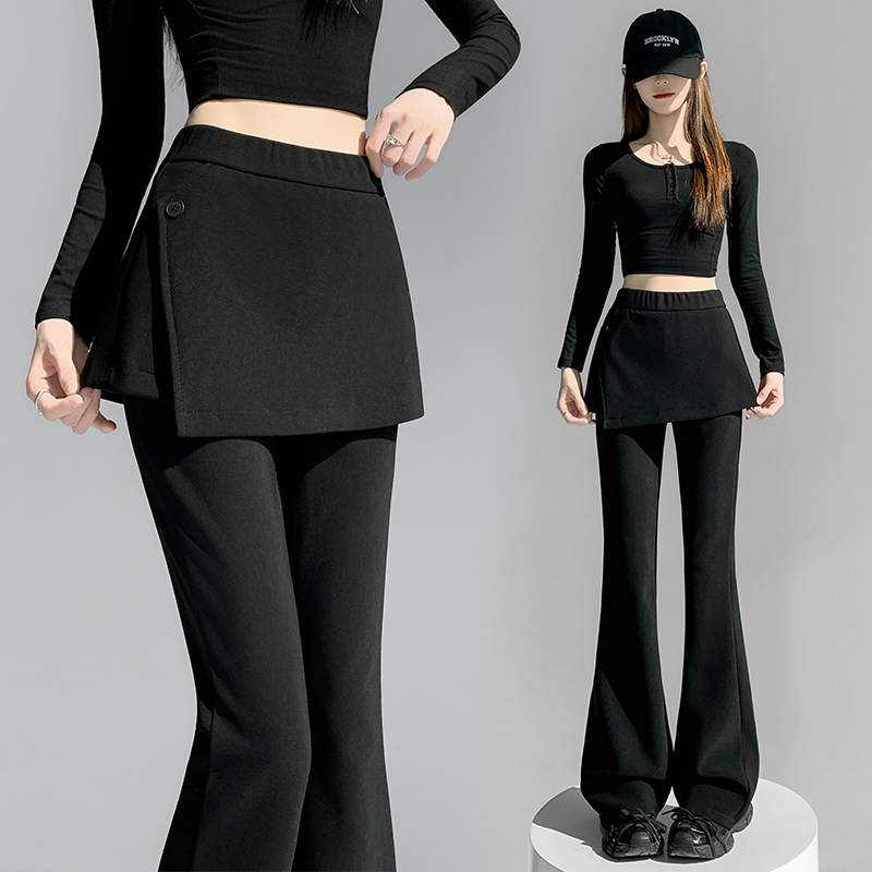 黑色微喇裤女春秋新款高腰显瘦假两件屁帘加长西装喇叭裤 服裝批發女裝批發服飾貨源