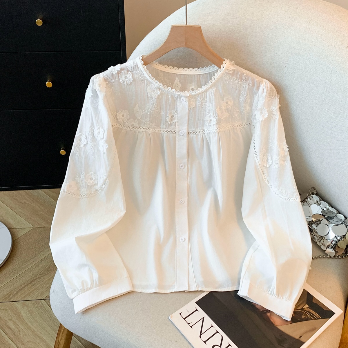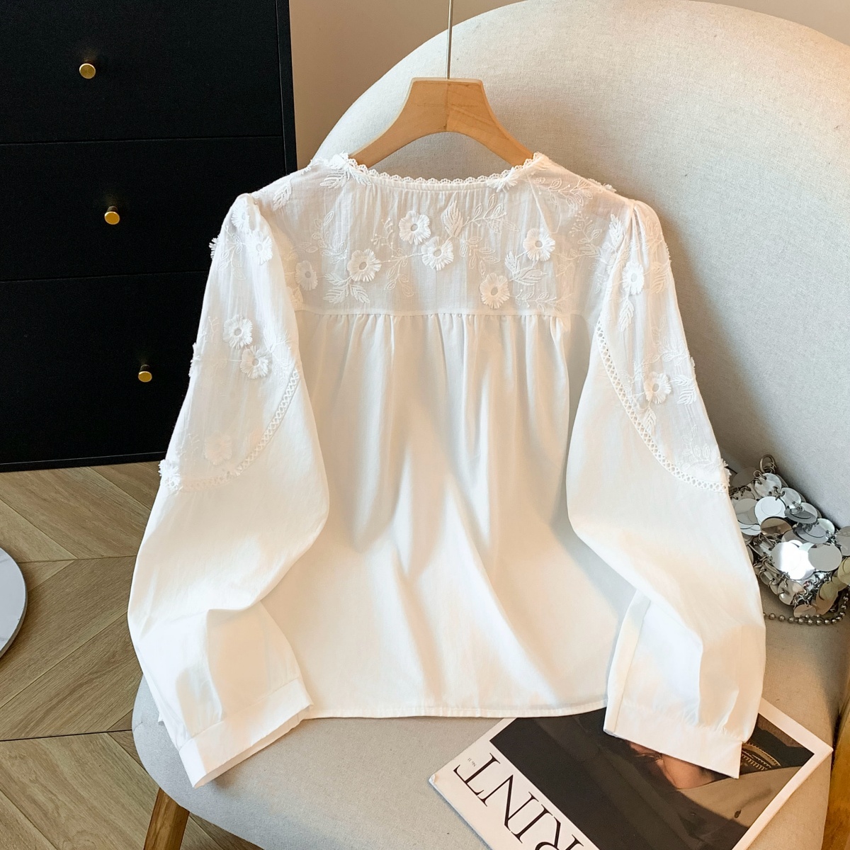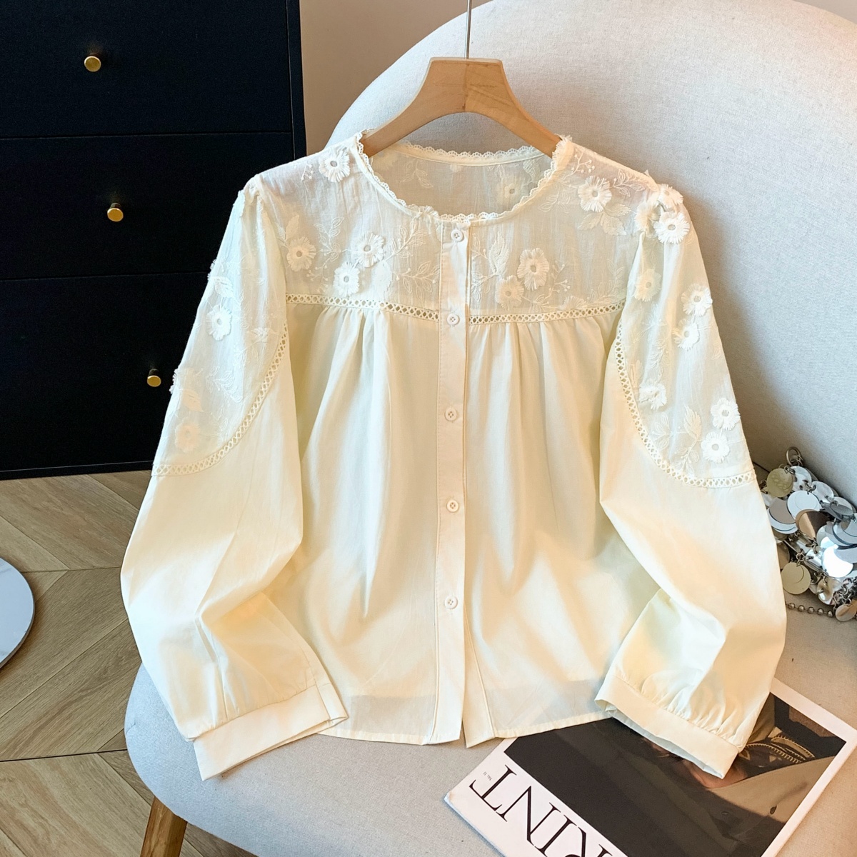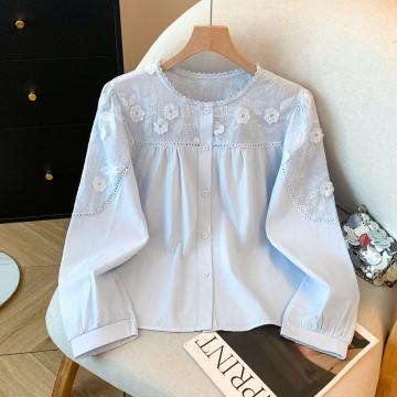 韩系甜美蕾丝花边衬衫女春新款宽松洋气系带小衫长袖上衣 服裝批發女裝批發服飾貨源