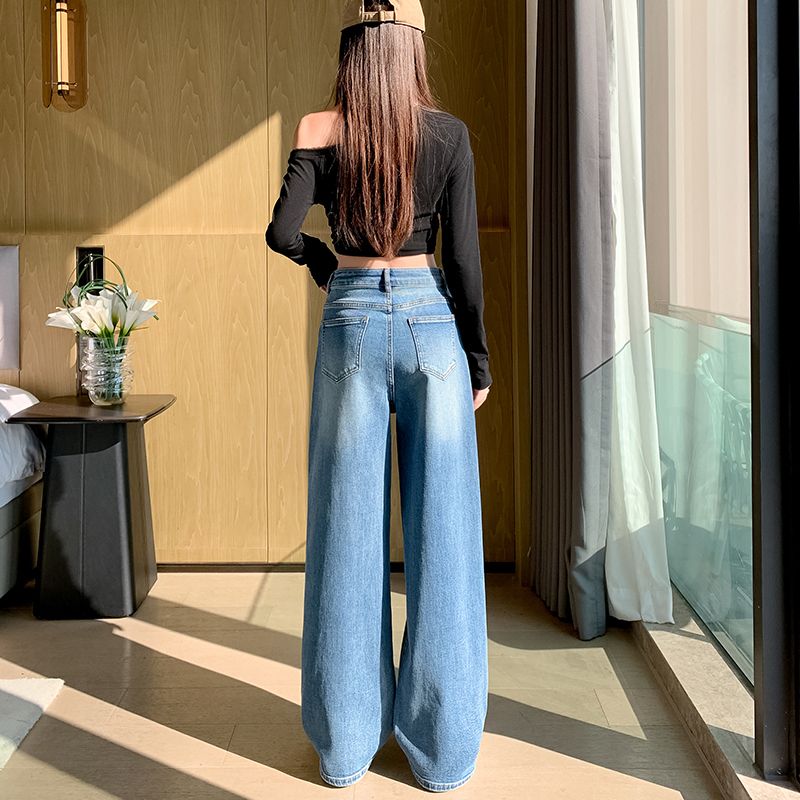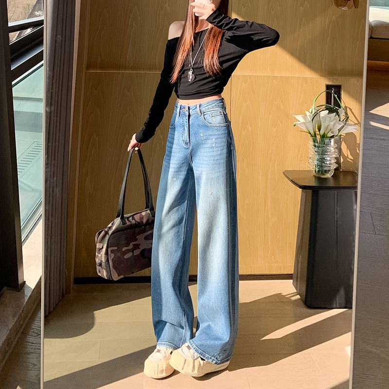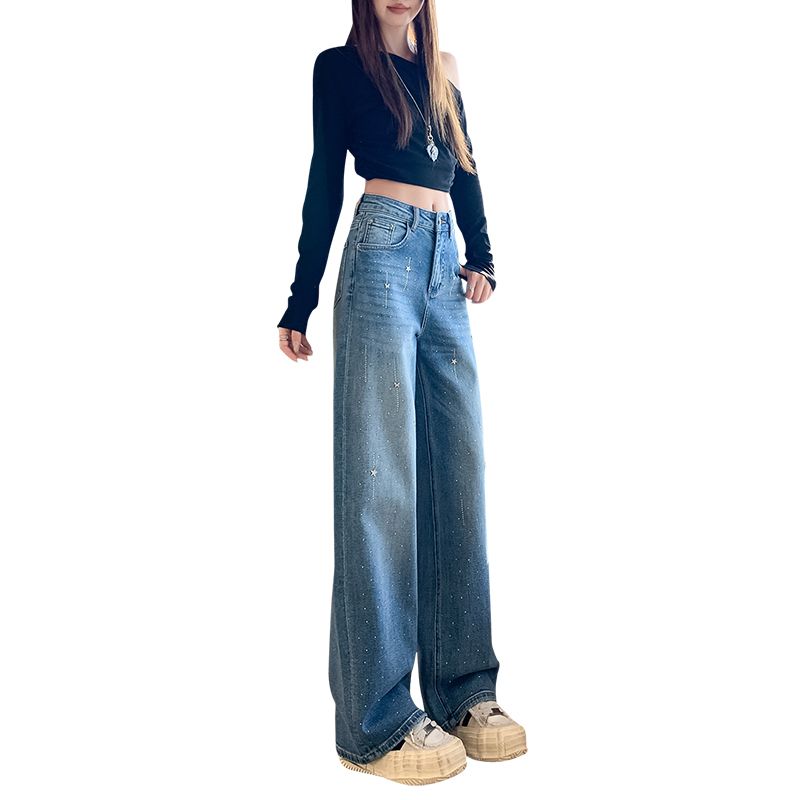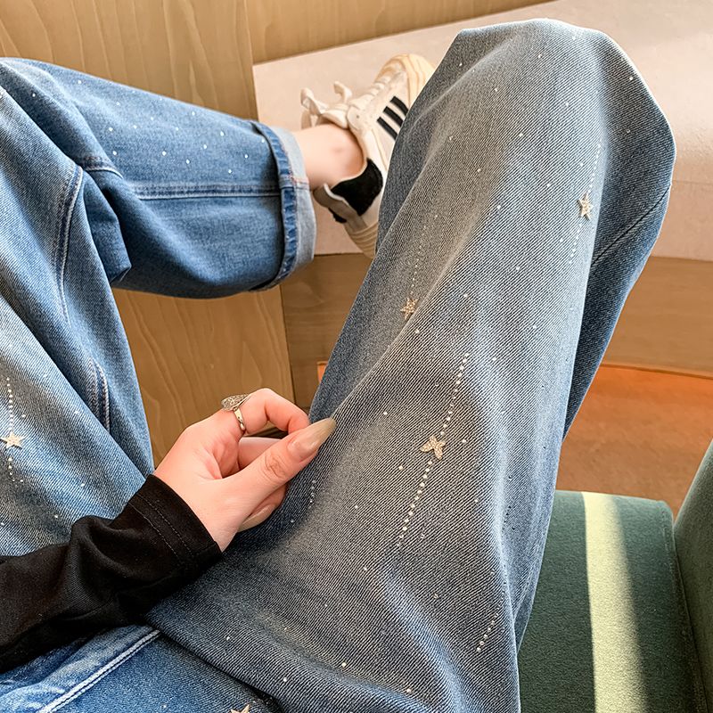 FA55965# 星星烫钻牛仔裤女新款春季设计感高腰直筒小个子阔腿裤 服裝批發女裝批發服飾貨源